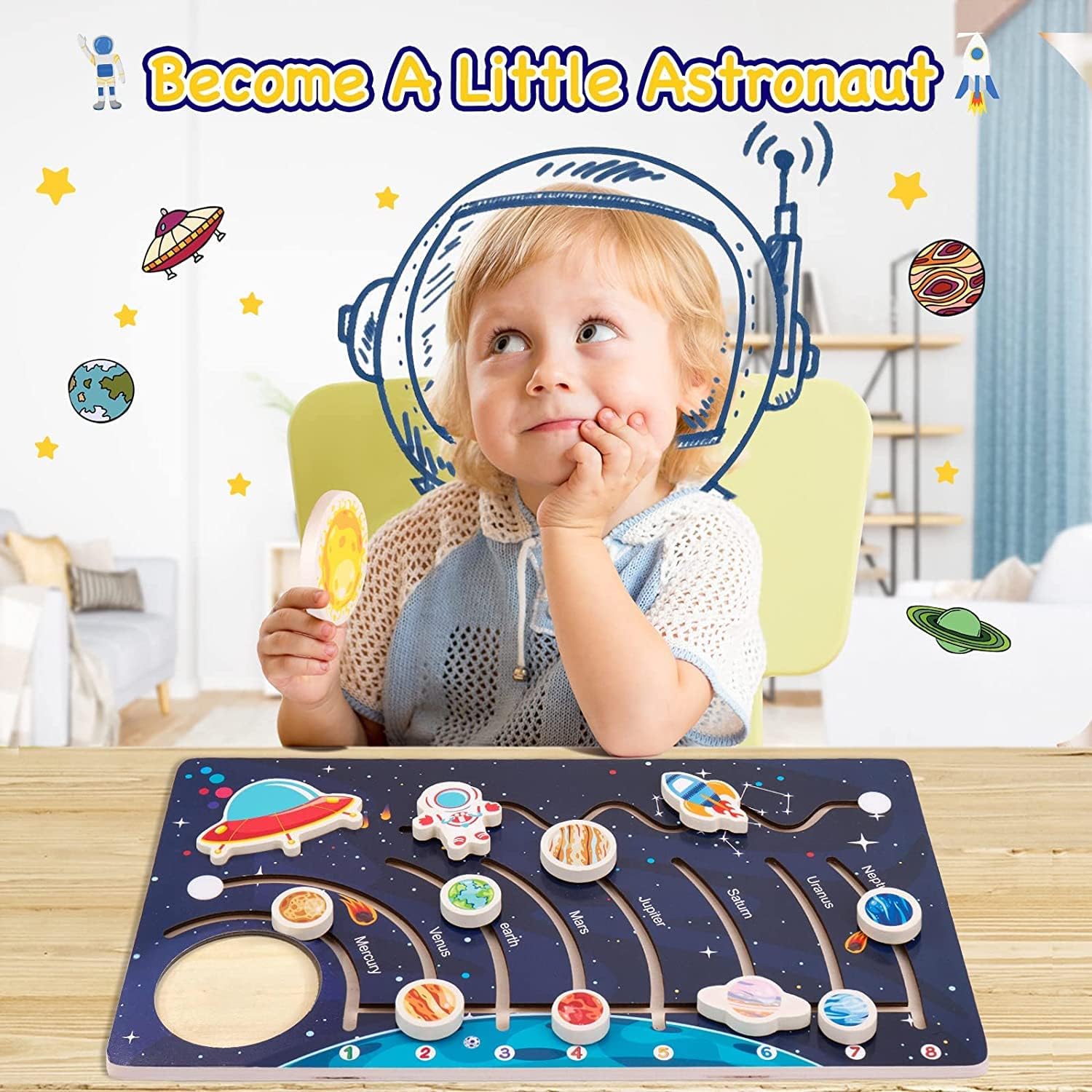 🌈【ضمان عالي الجودة】نحن نصر على اعتماد صناعة عالية الجودة وصنع منتجات دقيقة بعناية للأطفال الصغار. لعبة التعلم هذه مصنوعة من خشب غير سام بنسبة 100% مع طلاء مائي وآمن على الأطفال وصديق للبيئة. حواف لوحة النظام الشمسي ناعمة ولن تؤذي بشرة الطفل.