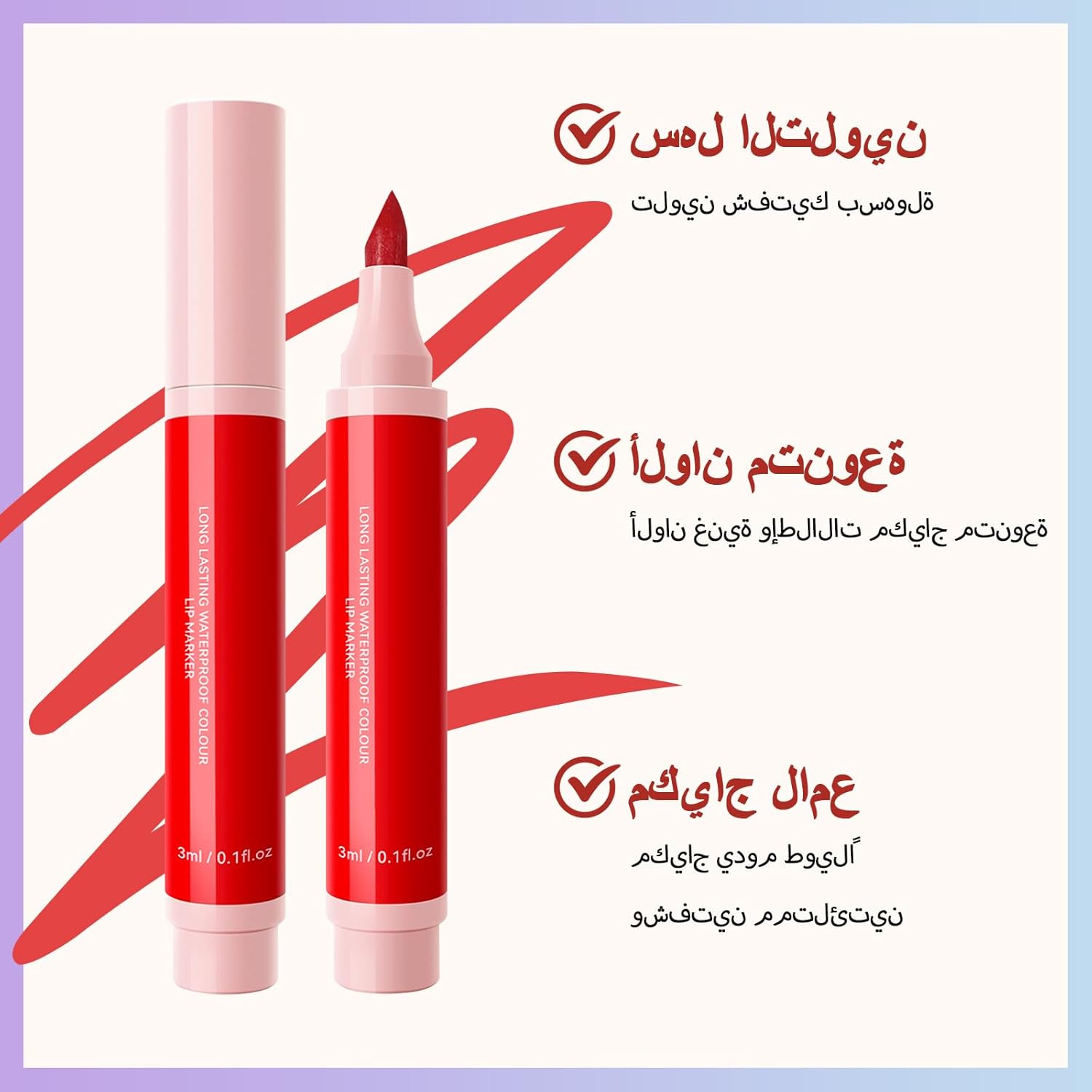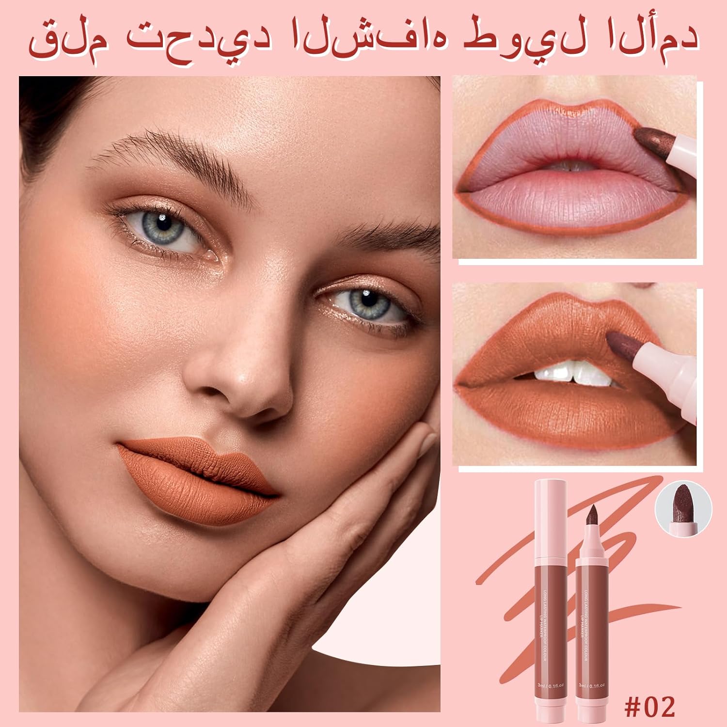 تصميم مزدوج الوظائف: جمعنا بين محدد الشفاه وأحمر الشفاه السائل في منتج واحد! استخدميه كمحدد شفاه لرسم خطوط دقيقة، أو كمكياج يومي لشفاه مشرقة طبيعية. يمنحكِ قوامه الفريد راحة لا مثيل لها ولونًا حريريًا.