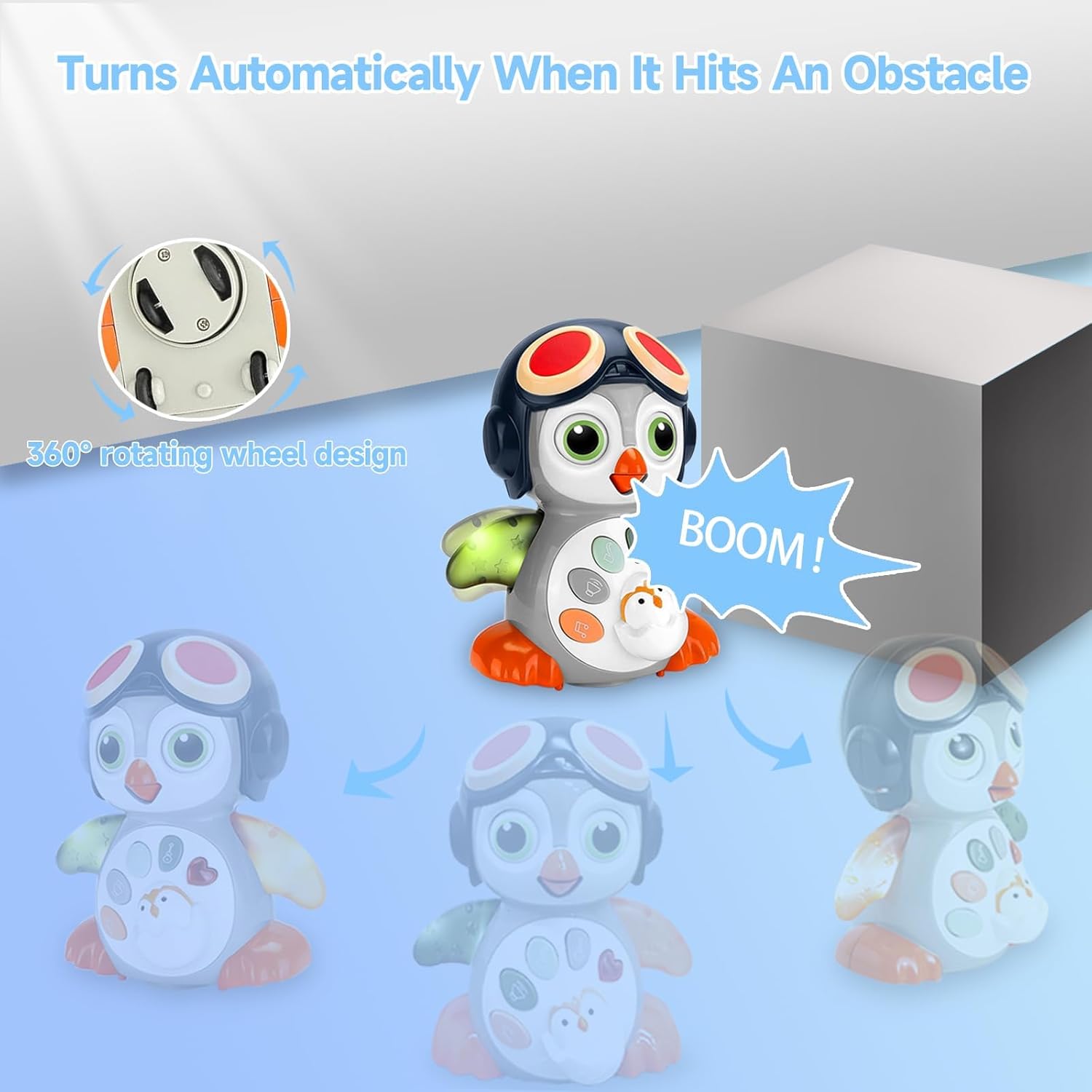 【لعبة بطريق مجنونة للأطفال】تتحرك بسرعة وتمشي مثل البطريق الحقيقي. عندما تقترب من عوائق، فإنها تعكس اتجاهها بذكاء. الأطفال من سن 6 إلى 12 شهرًا مفتونون تمامًا بالطريقة التي يتحرك بها البطريق وسيحاولون الزحف نحو البطريق. سيبدأ الأطفال الصغار الذين تتراوح أعمارهم بين 1-2 سنة في محاولة السير نحوها. أفضل طريقة للأطفال الصغار لتعلم الزحف والمشي..