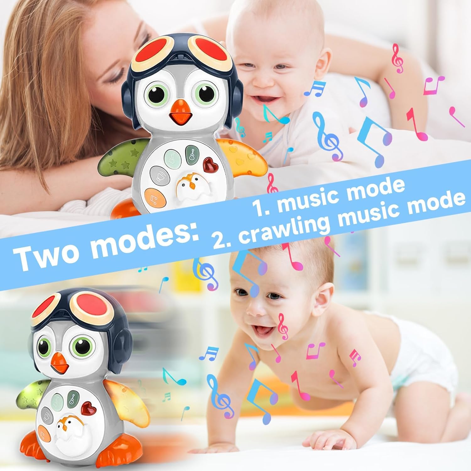 【هدية شخصية】البطريق الموسيقي الرائع هو هدية فريدة تعزز وقت البطن للأطفال من سن 0-3 3-6 6-12 شهرًا، وتشجع على الزحف للأطفال من عمر 0-6 و6 إلى 12 شهرًا، وتساعد الأطفال الصغار على المشي من سن 1 إلى 12 شهرًا فما فوق، وتجعل الأطفال يبتسمون ويضحكون. ستكون طيور البطريق الزاحفة هي الجولة الجديدة من هدايا أعياد الميلاد والعطلات مثل هدايا الكريسماس وهدايا ادفنت والمزيد..
