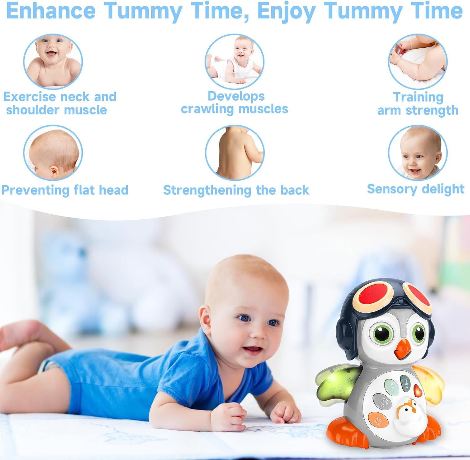 【لعبة وقت البطن للطفل】وقت البطن هو حقًا تمرين أولي صحي ومفيد للغاية للأطفال حديثي الولادة. ألعاب البطريق الخاصة بنا مثالية كلعبة لوقت البطن للأطفال من 0-3 إلى 3 إلى 6 أشهر، الذين يحبون مشاهدة البطريق يركض أثناء وقت البطن. مثالية لممارسة عضلات عنق الطفل، فهي مساعد جيد لتحفيز الأطفال الذين لا يرغبون في البحث أثناء وقت البطن..