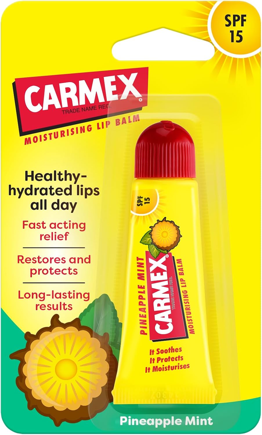 قد يكون مرطب الأناناس والنعناع المميز بعامل الحماية من أشعة الشمس بدرجة 15 أروع مجموعة لدينا حتى الآن في كارمكس. نحن نعلم أنه قد يبدو غريبًا نوعًا ما. ولكن ثق بنا – هذا المزيج رائع للغاية. مذاق الأناناس الحلو كثير العصارة الذي ينفجر إلى نكهة النعناع البارد الذي يؤدي إلى الشعور بالوخز الموثوق به، ما يترك شفتيك رطبة ومهدئة بمزيج غير متوقع.