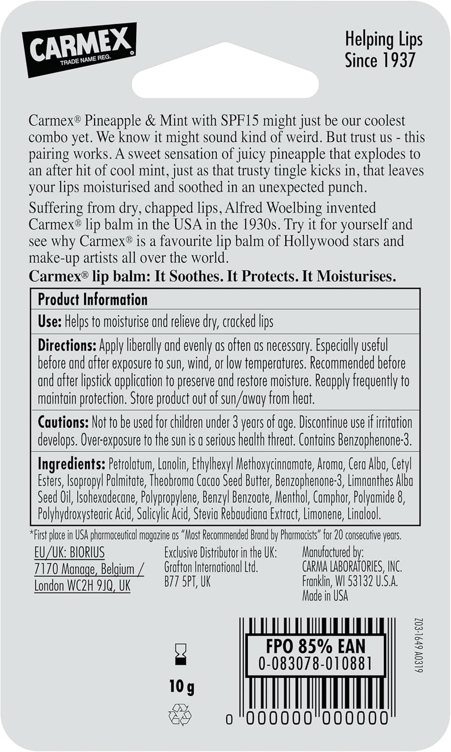 معاناة الشفاه الجافة والمتشققة، اخترع ألفريد ويلبينغ بلسم الشفاه كارمكس في الولايات المتحدة الأمريكية في الثلاثينيات. لا تزال عائلة ويلبينغ تدير الأعمال التجارية اليوم، وأصبحت كارمكس واحدة من أكثر مرطبات الشفاه المحبوبة في العالم حيث تباع أكثر من 137 مرطبًا كل دقيقة!