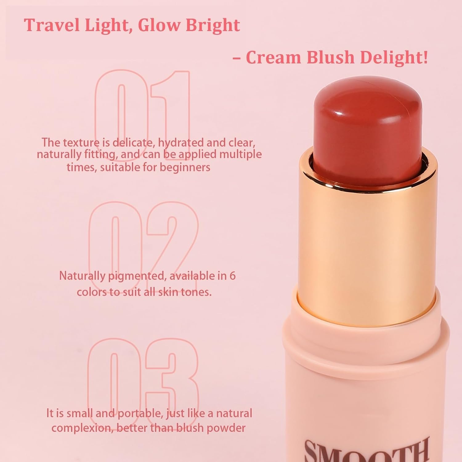 💕【سهل الاستخدام】يمكن لف أحمر الخدود هذا مثل أحمر الشفاه. لا تحتاج إلى أي أدوات مكياج للمساعدة. من السهل وضعه ووضعه في الخارج.