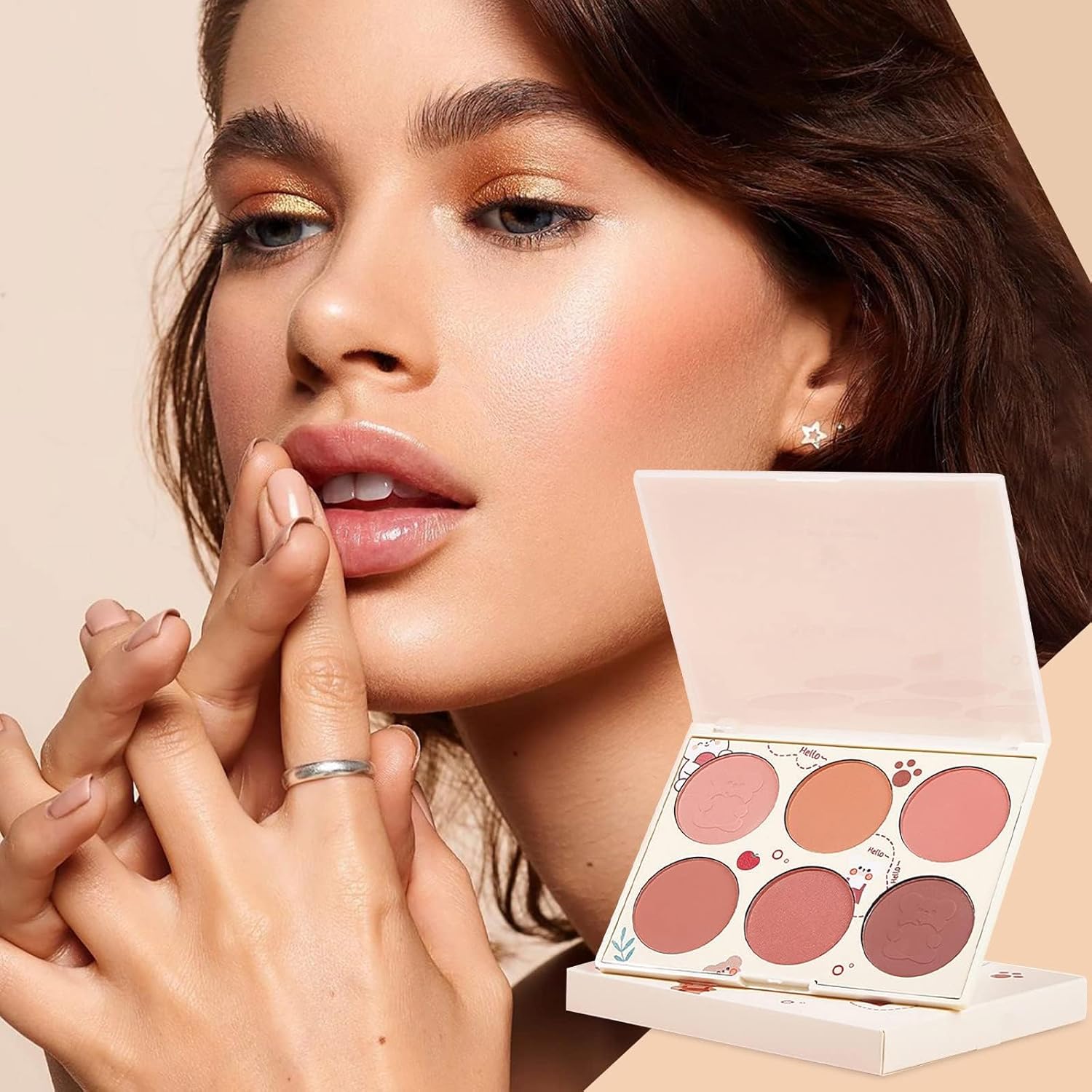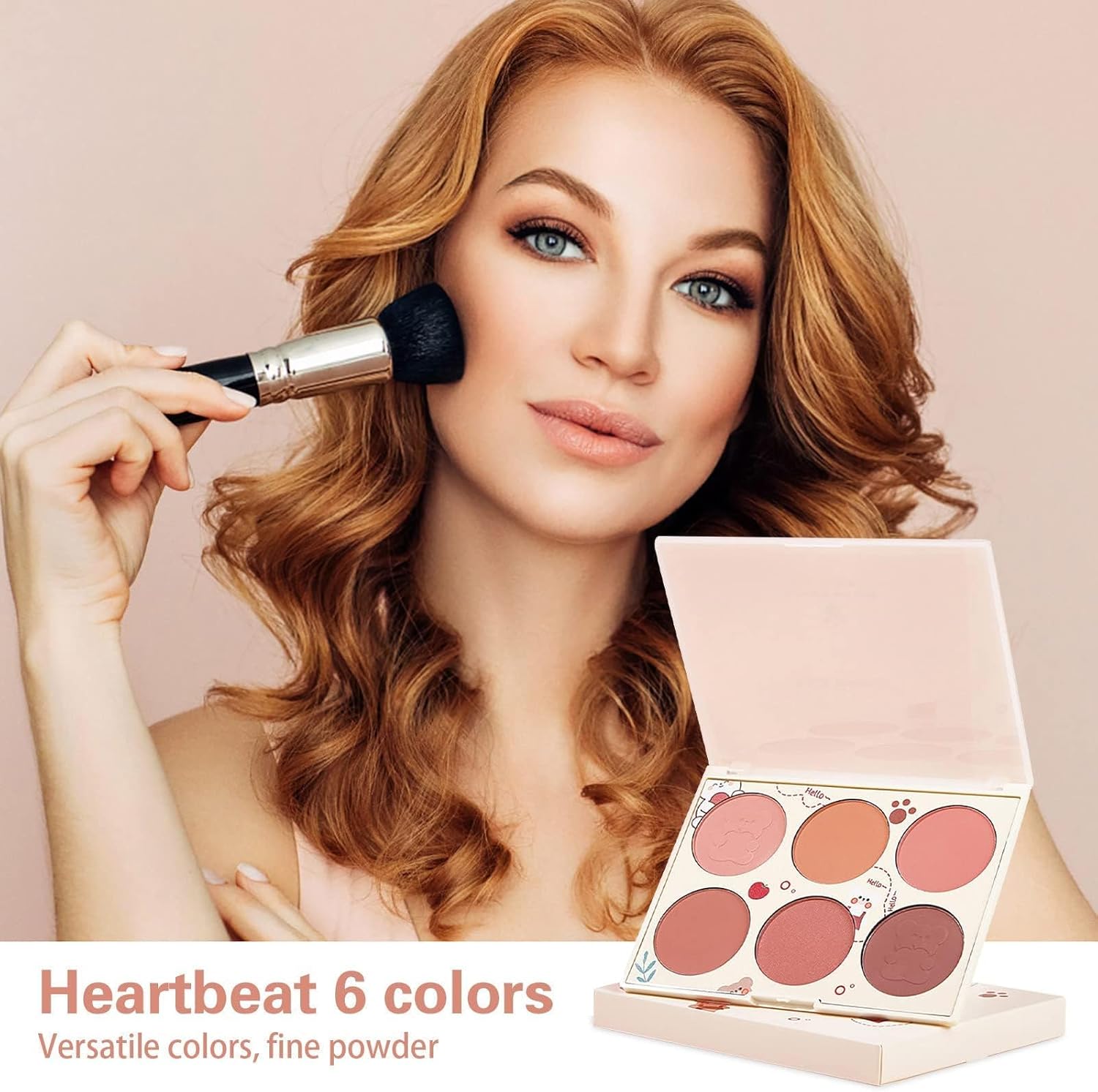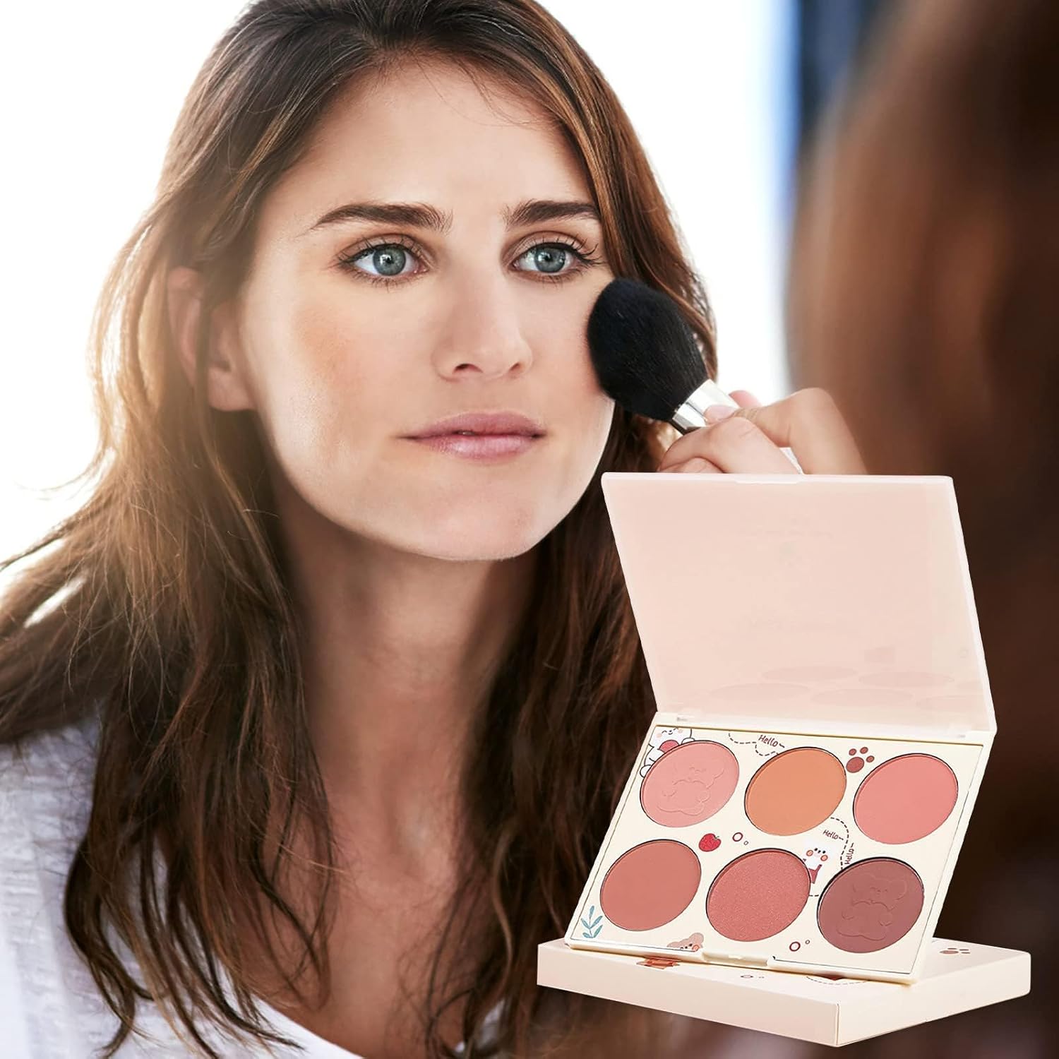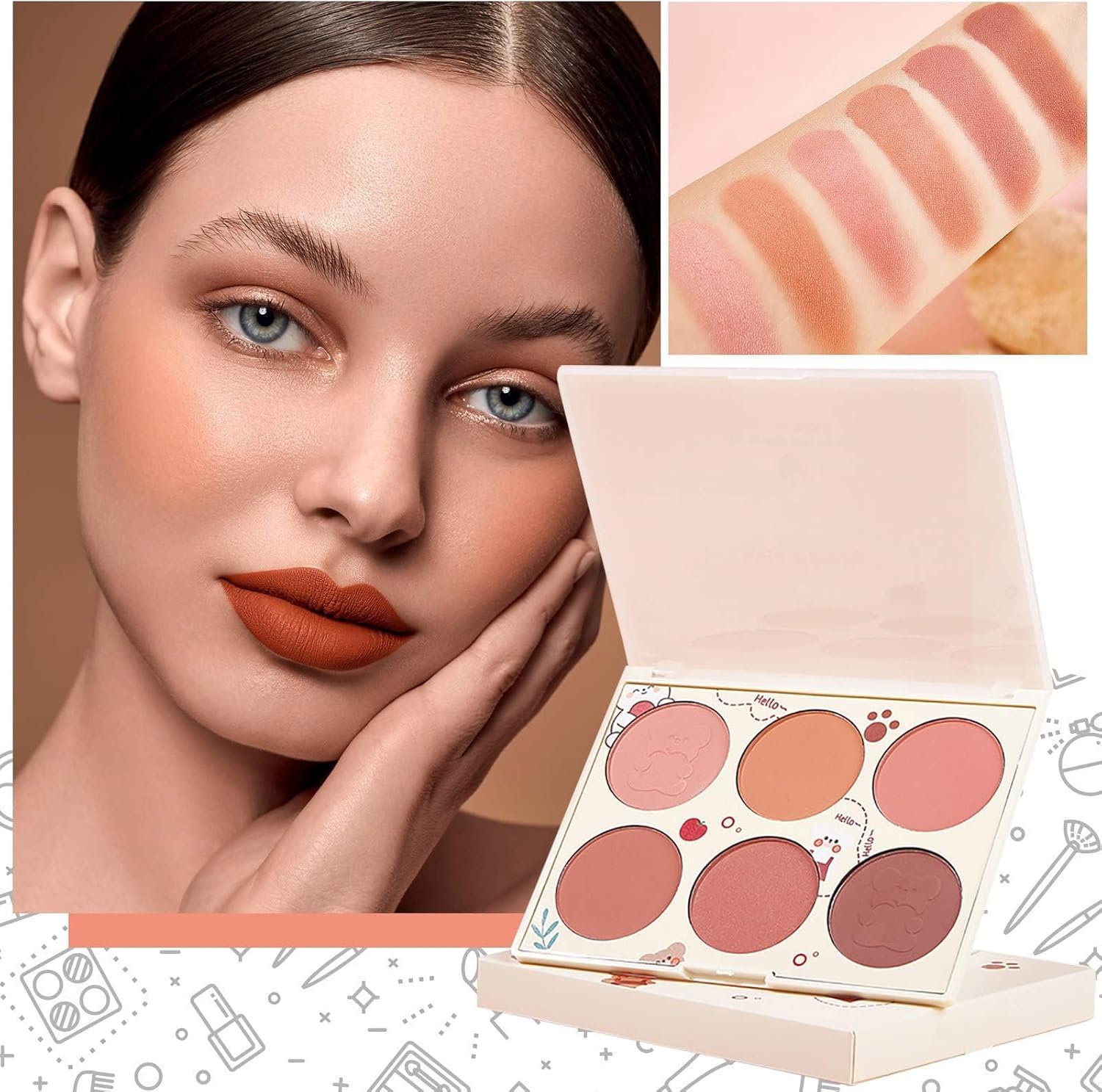 🥰🌸【ألوان غير لامعة ولامعة】: هناك 6 أنواع من بودرة أحمر الخدود. غير لامع ومزيج من أحمر الخدود المتوهج والمتوهج.
