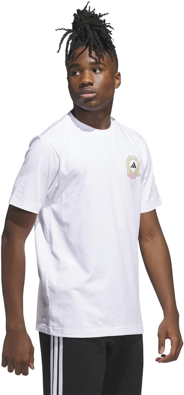 اديداس تيشرت رجالي مطبوع عليه شعار العلامة التجارية، لون ابيض، مقاس L