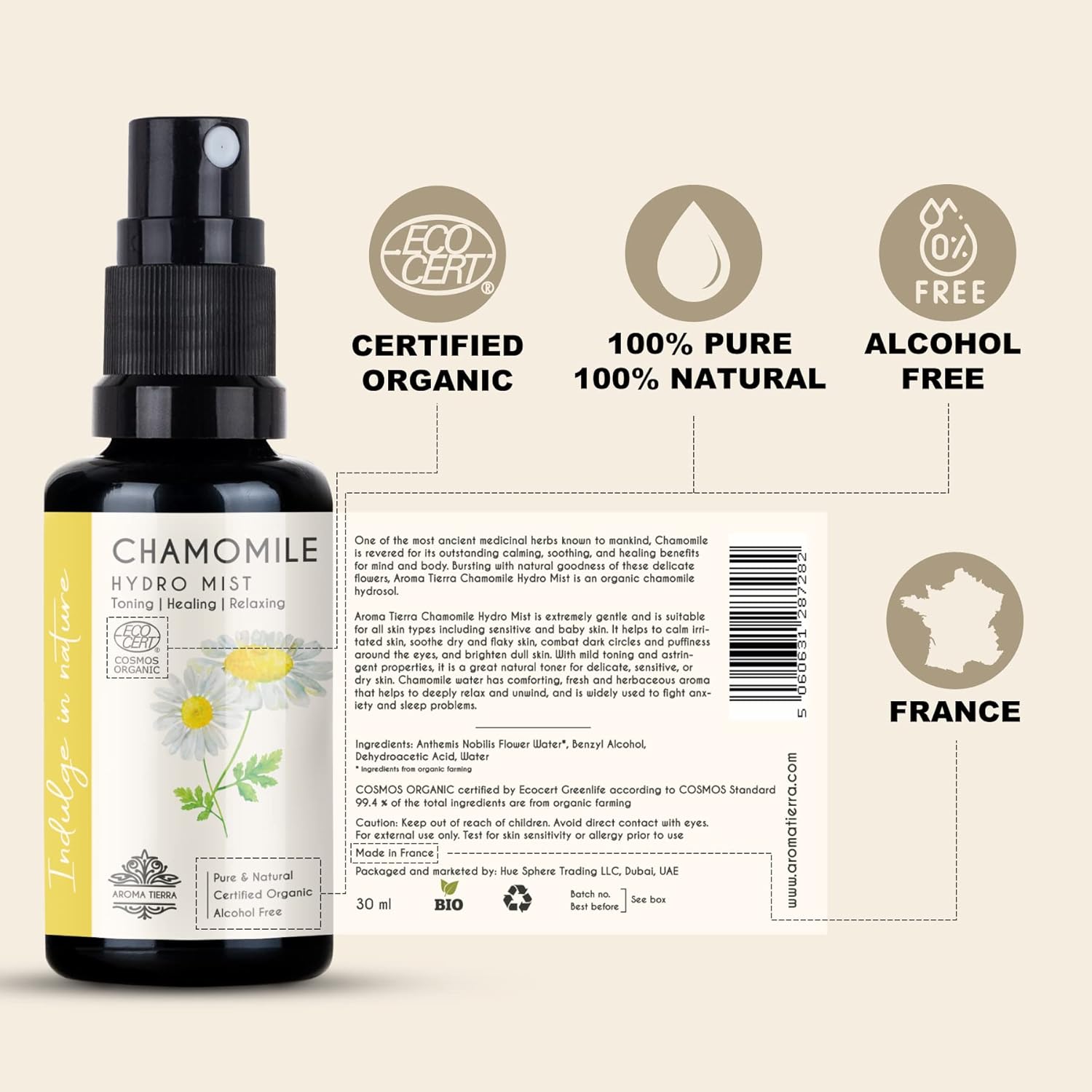 مناسب لجميع أنواع البشرة – رذاذ الماء برائحة البابونج من اروما تييرا لطيف للغاية ومناسب لجميع أنواع البشرة بما في ذلك البشرة الحساسة والحساسة