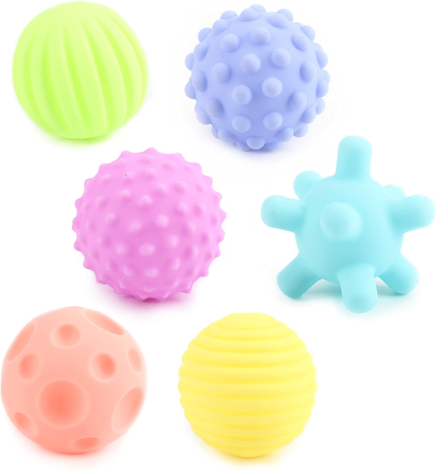 🥎 أشكال متعددة لمزيد من المرح: يمكن للأطفال الصغار الاستمتاع بهذه الكرات والتدريب على المهارات الحسية والحركية أيضًا في الوقت.ذاته أثناء تدحرج الكرة وتتبعها والزحف خلفها ومحاولة ارتدادها. يمكنك أيضًا تدليك جسم طفلك الصغير باستخدام كرة الأطفال ذات النتوءات.