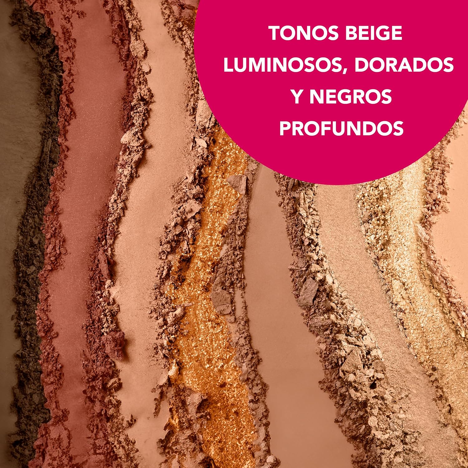 – 8 درجات فائقة الصبغة باللون البيج والذهبي الأسود الغامق في لوحة واحدة.