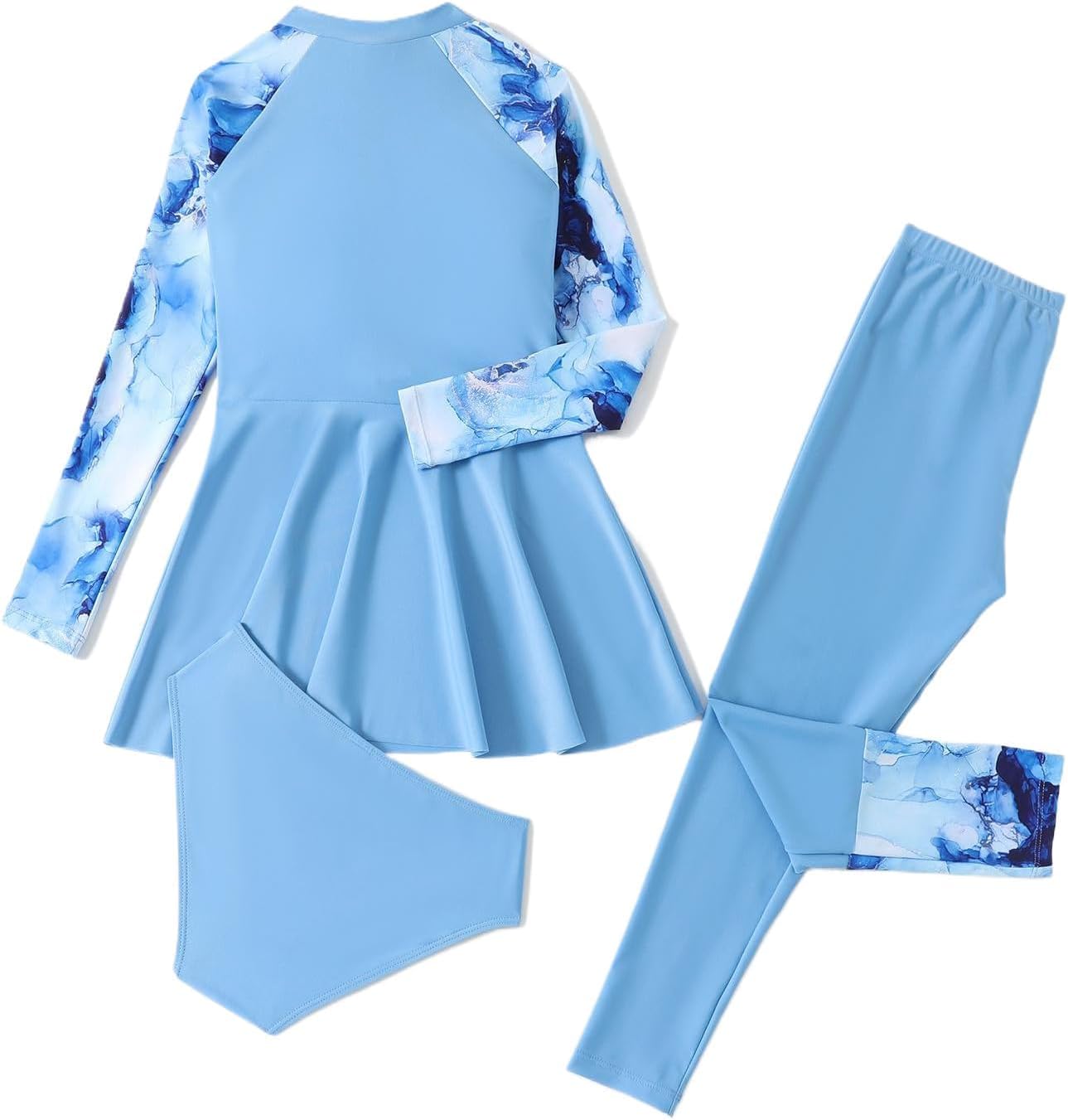 بدلة سباحة بأكمام طويلة للبنات من ماكسمانا سيكريت، بدلة سباحة إسلامية محتشمة للحماية من الطفح الجلدي بتغطية كاملة من 3 قطع