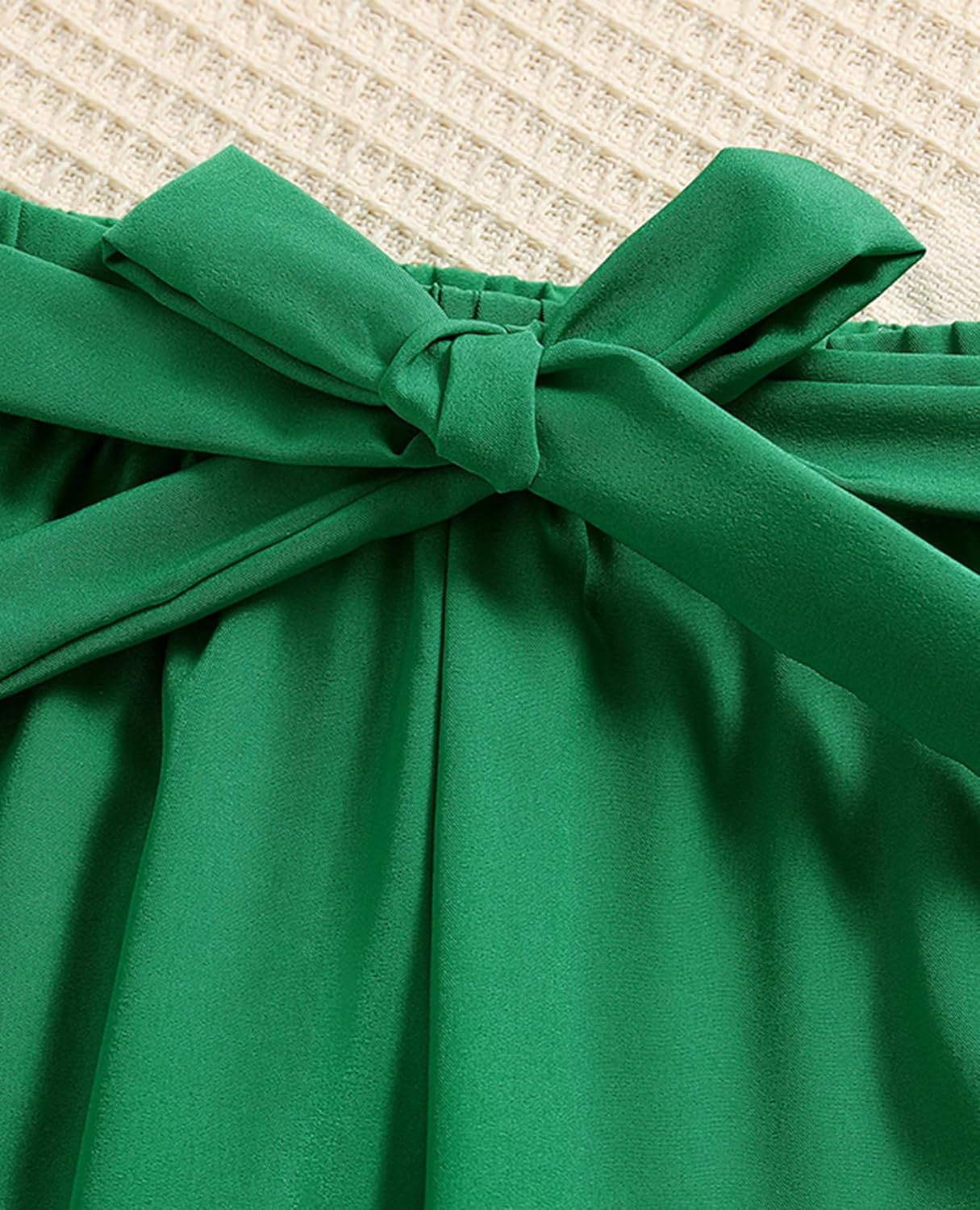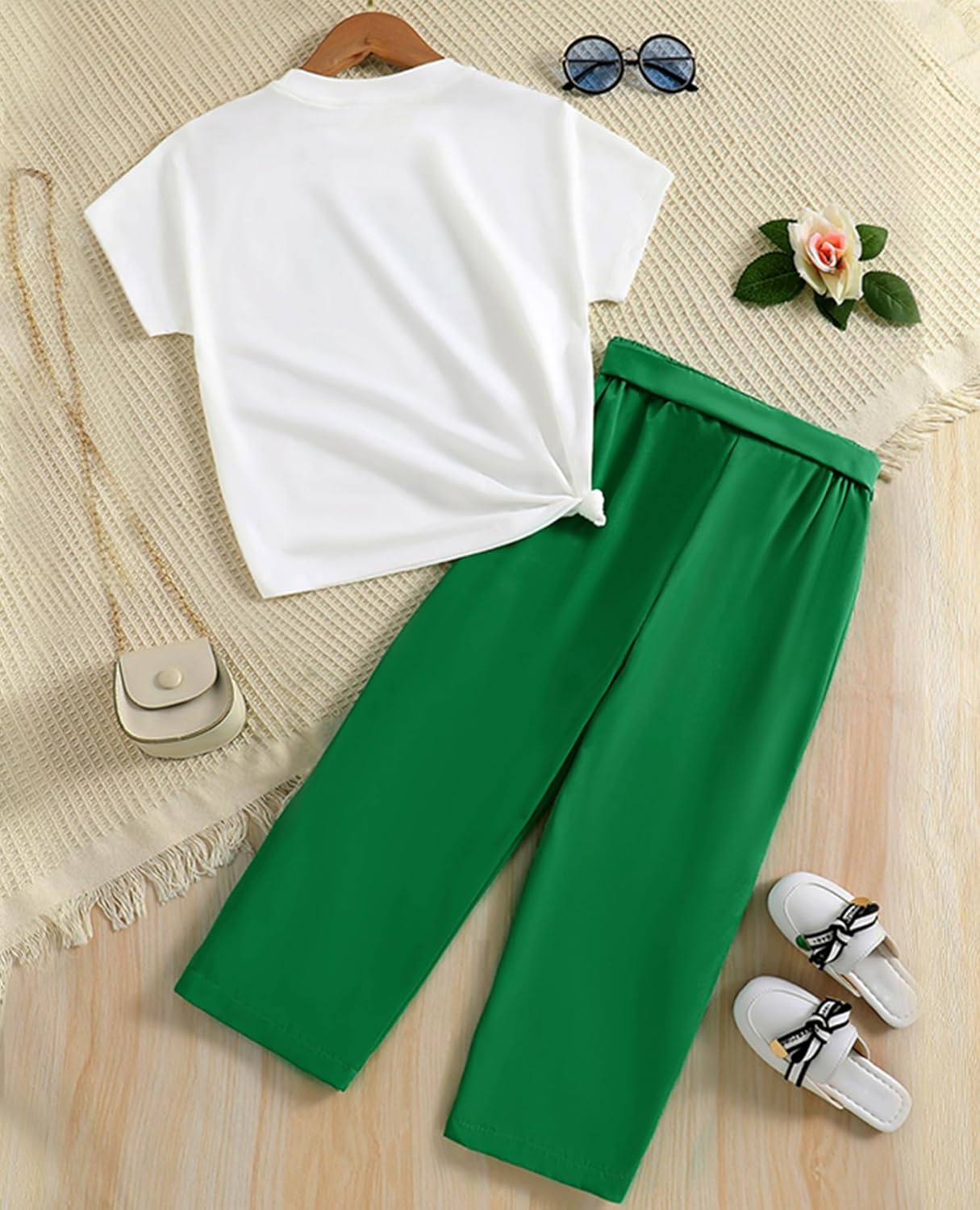 اسم المنتج: بلوزة قصيرة للبنات + سروال سادة مع حزام