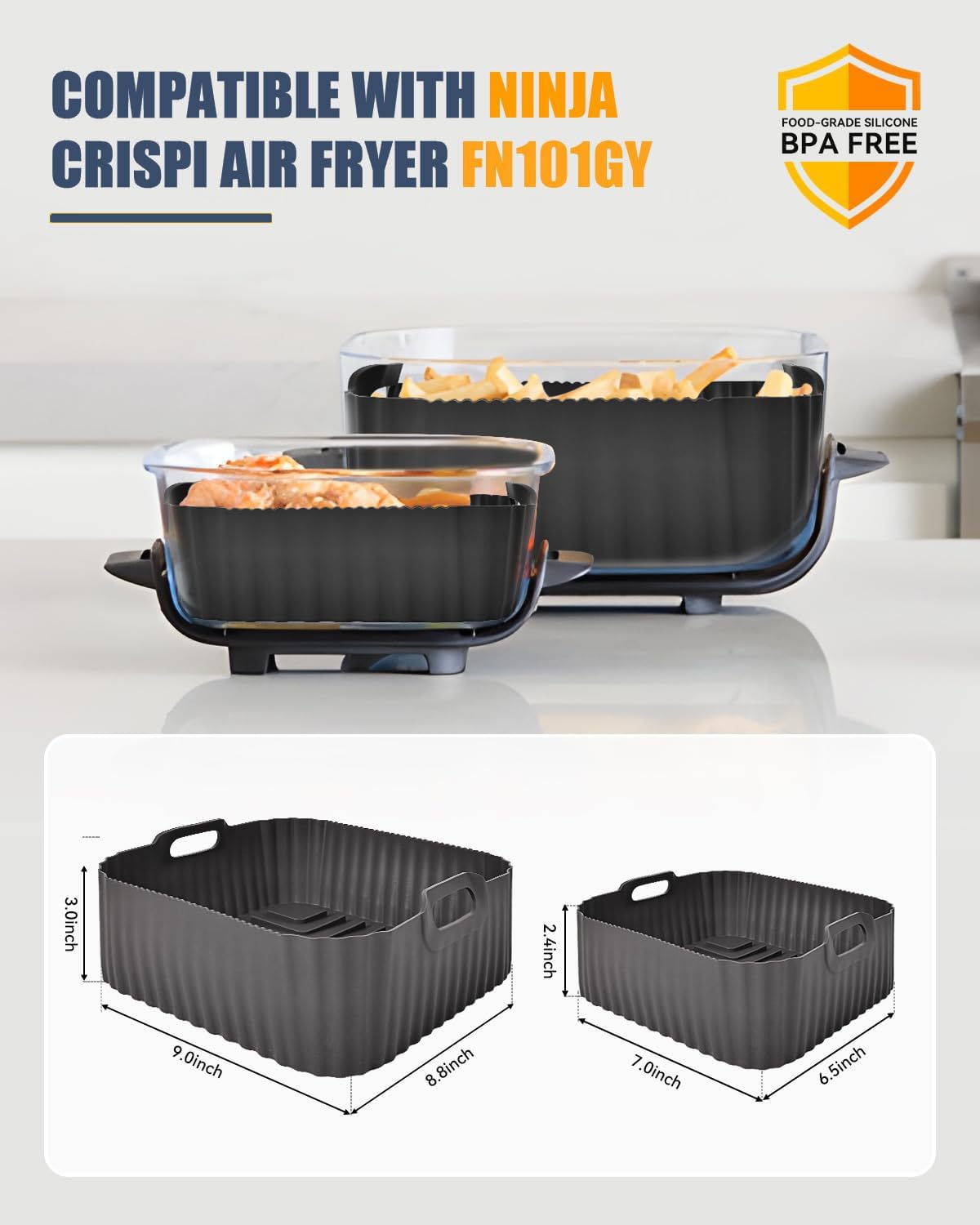 ملاءمة وحماية مثالية لنينجا كريسبي FN101GY – ملاءمة مخصصة للقلاية الهوائية الزجاجية نينجا كريسبي FN101GY/FN101SG/FN101ST. تغطي مجموعة الحشوات المصنوعة من السيليكون حاويات سعة 4 كوارت و6 أكواب، مما يحسن أداء الطهي وثباته. يحمي أسطح الحاوية من التآكل والبقايا ويحافظ على نظافة المقلاة الهوائية وفي أفضل حالة.