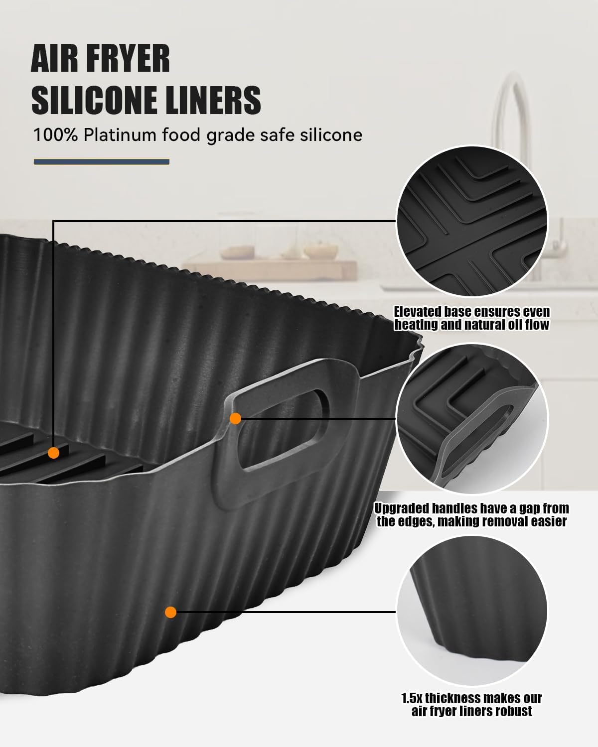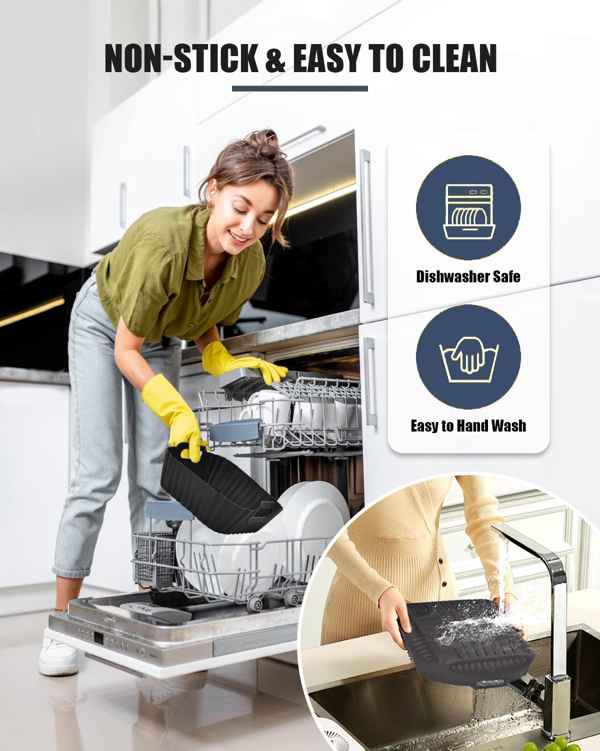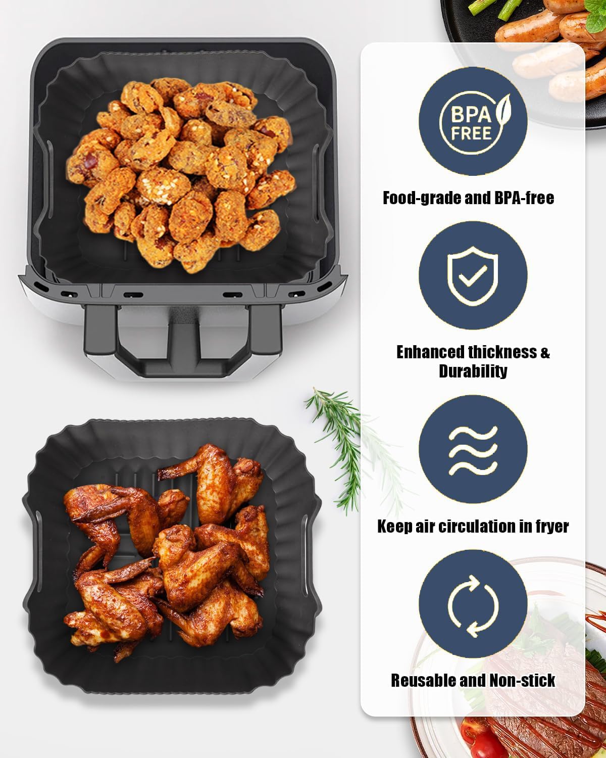 متعددة الاستخدامات وأساسية – بطانات المقلاة الهوائية المصنوعة من السيليكون من ايمجو ضرورية للمطبخ، رائعة للاستخدام مع المقالي الهوائية وأجهزة البخار والأفران والأواني الفورية وأفران الميكروويف وأكثر من ذلك. إنها الهدية المثالية لعائلتك وأصدقائك وأي شخص متحمس للطهي.
