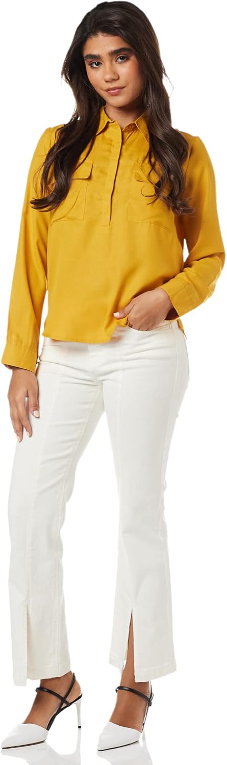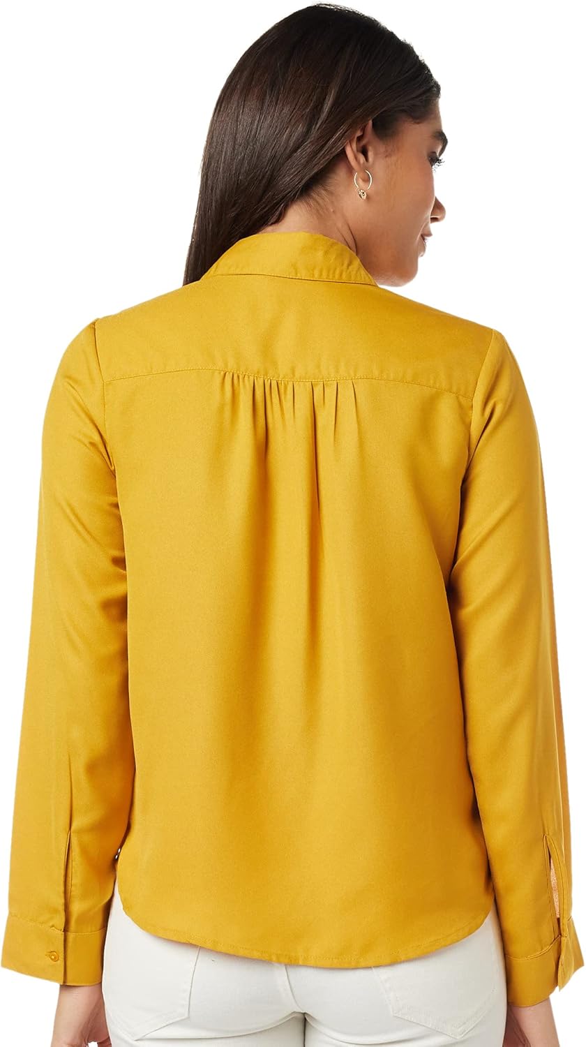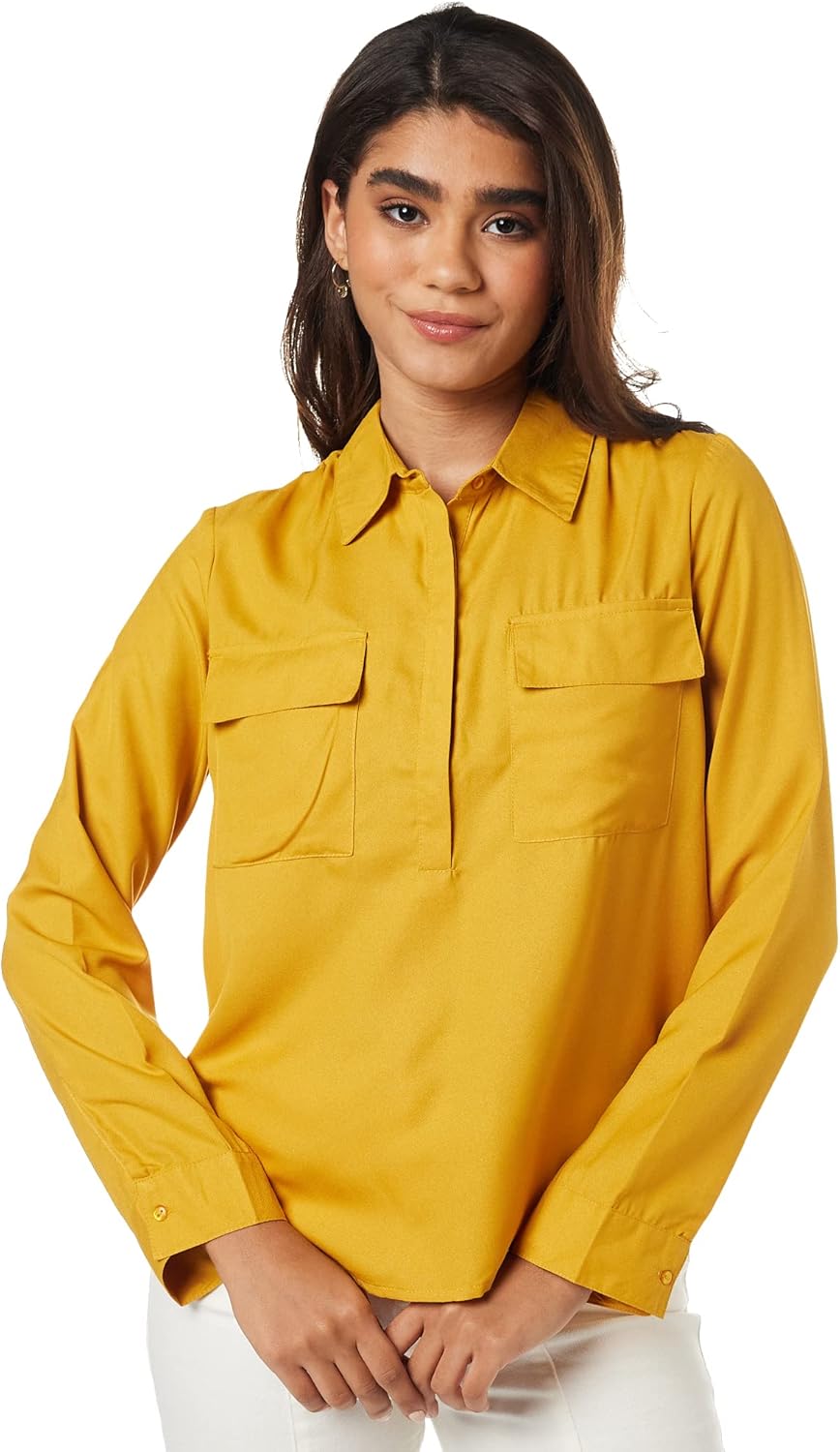 بلوزة بقصة عادية للنساء ولون سادة من أمازون براند – سيمبول