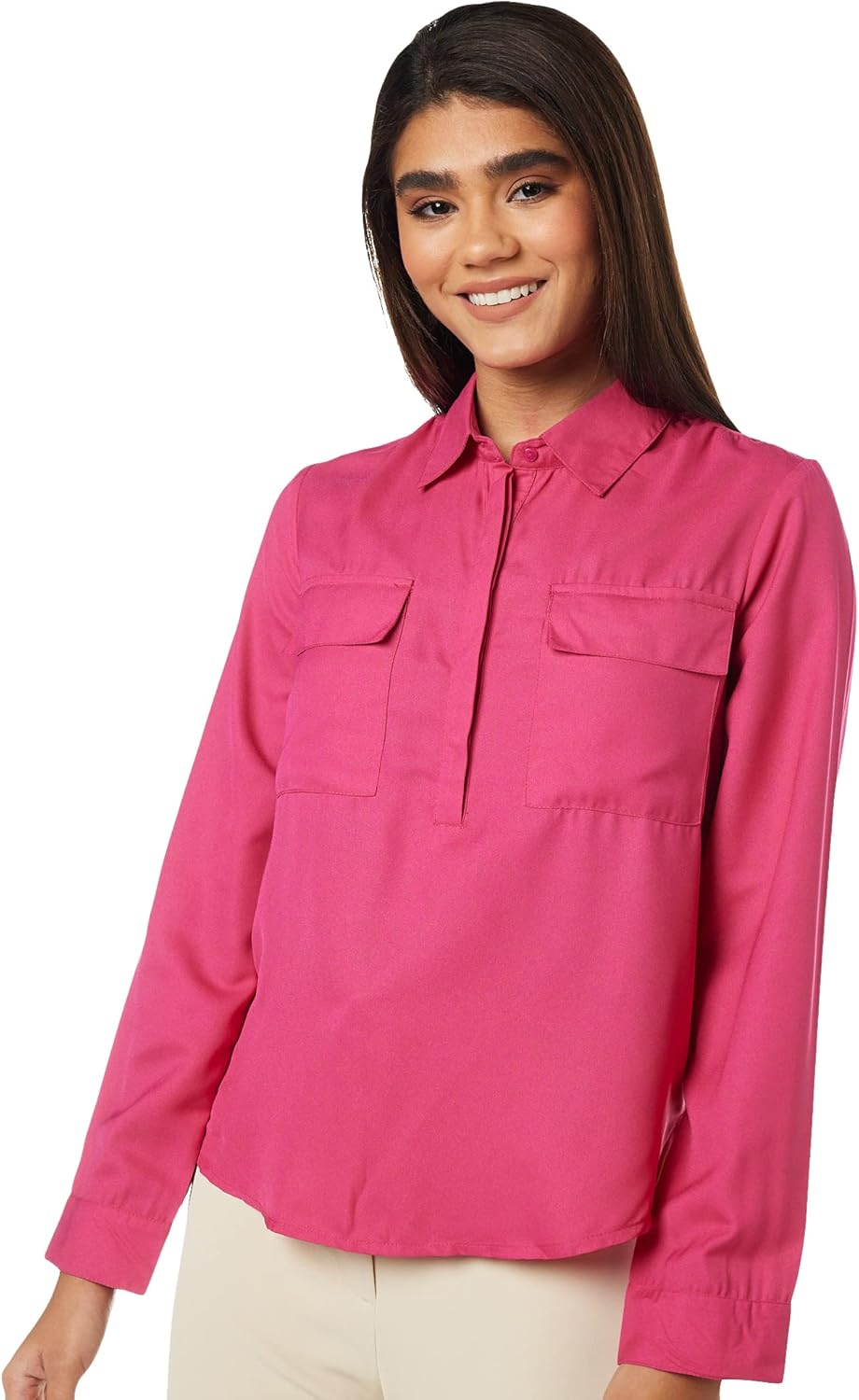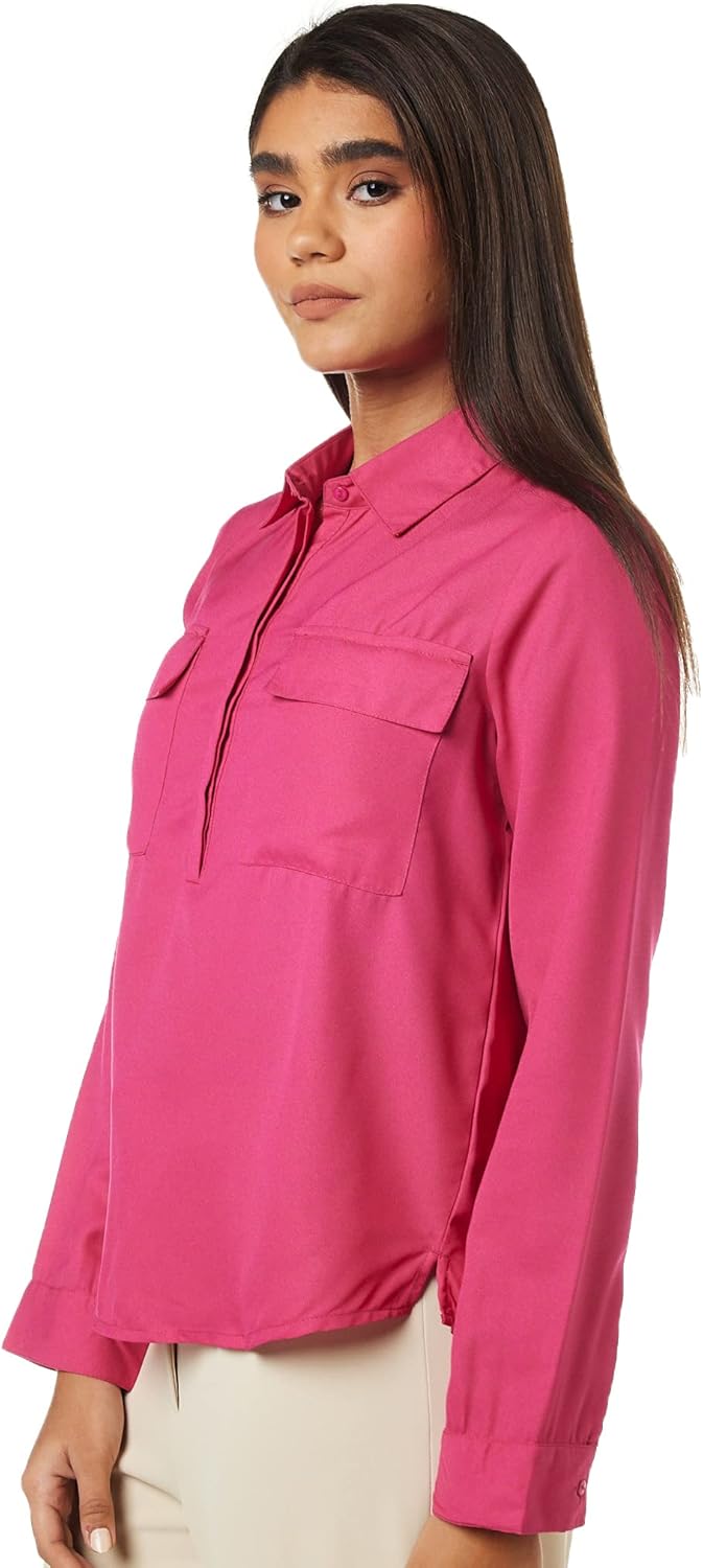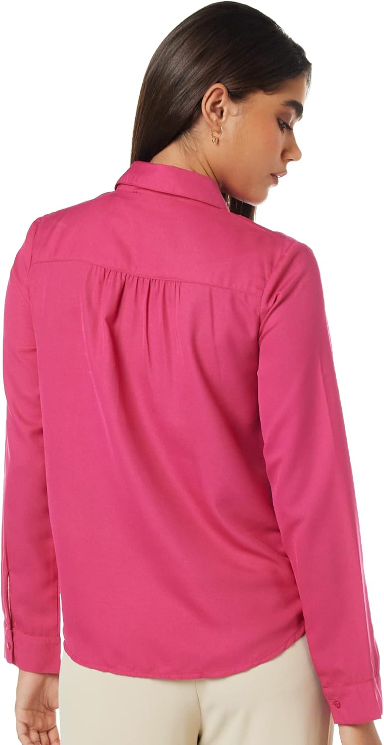 بلوزة بقصة عادية للنساء ولون سادة من أمازون براند – سيمبول