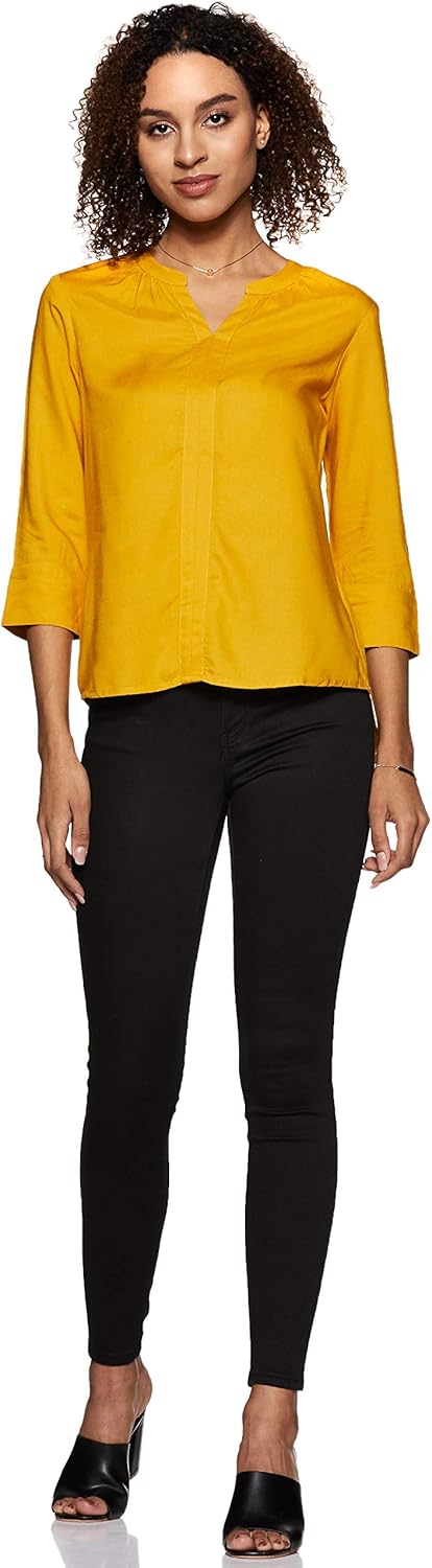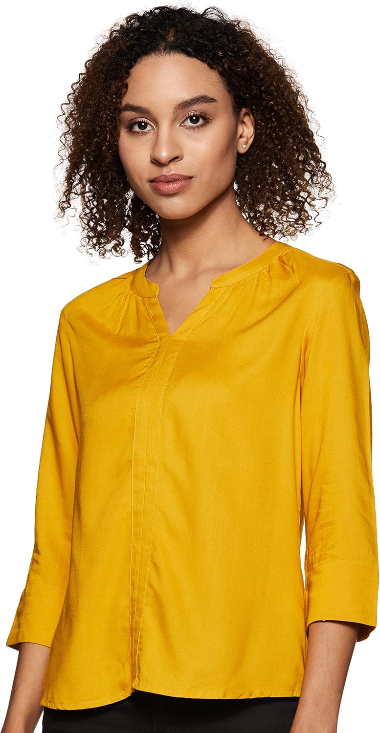بلوزة بقصة عادية للنساء ولون سادة من أمازون براند – سيمبول