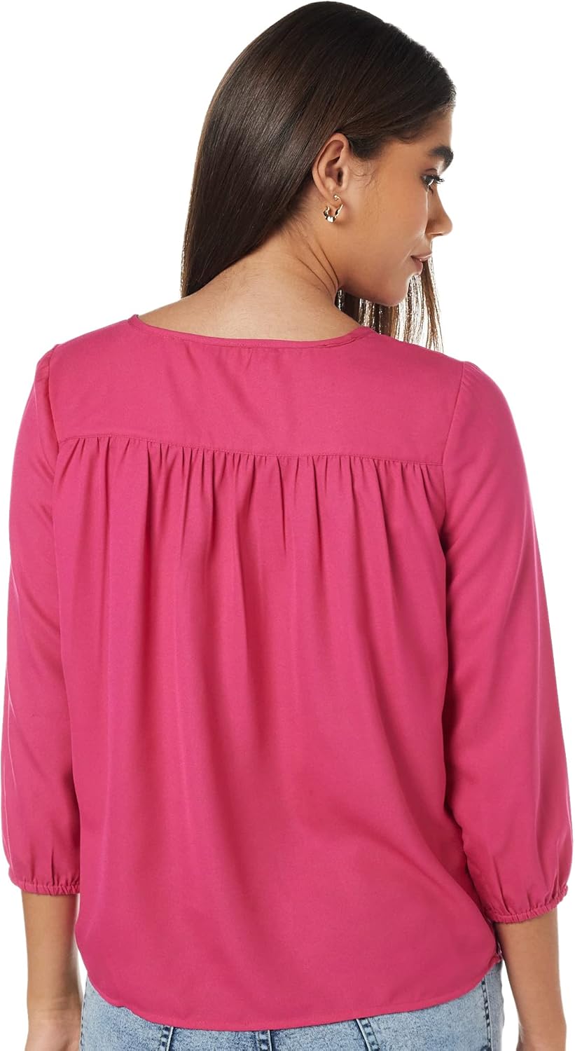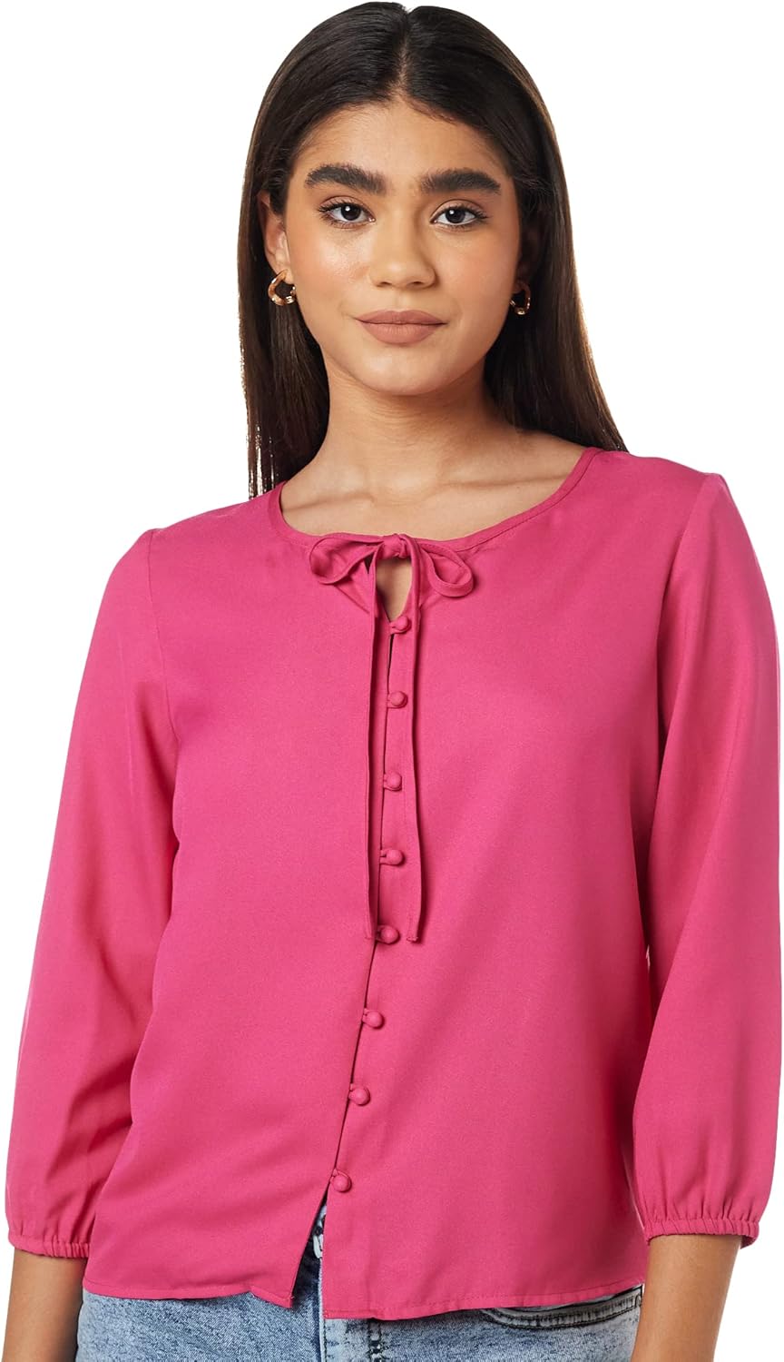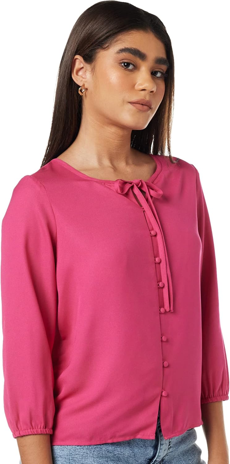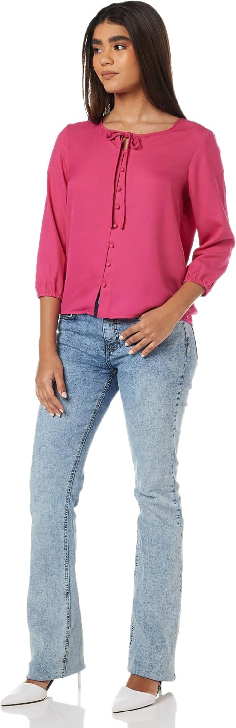 بلوزة بقصة عادية للنساء ولون سادة من أمازون براند – سيمبول