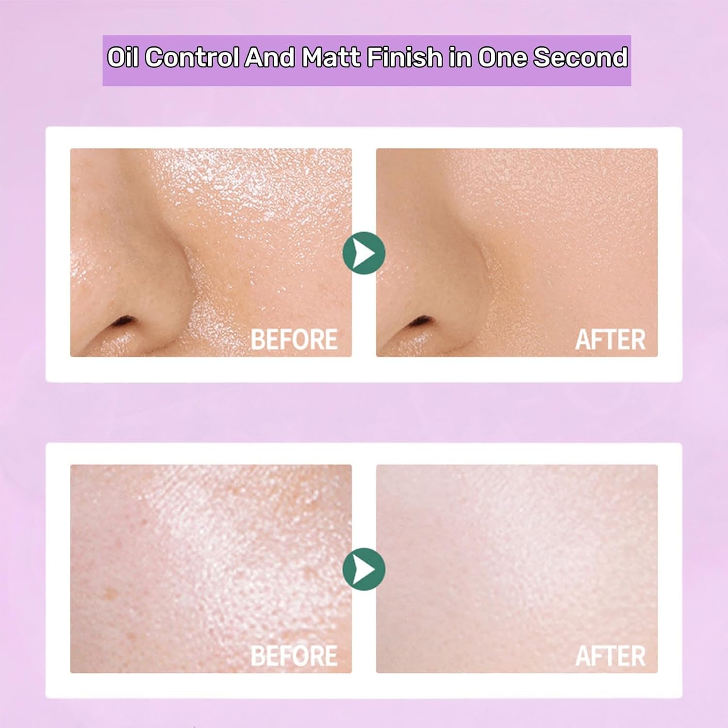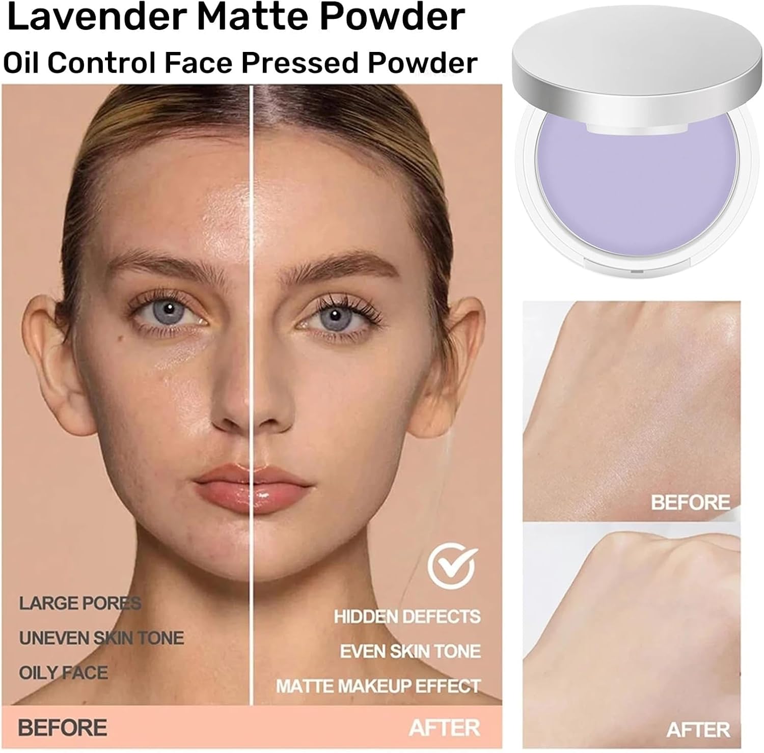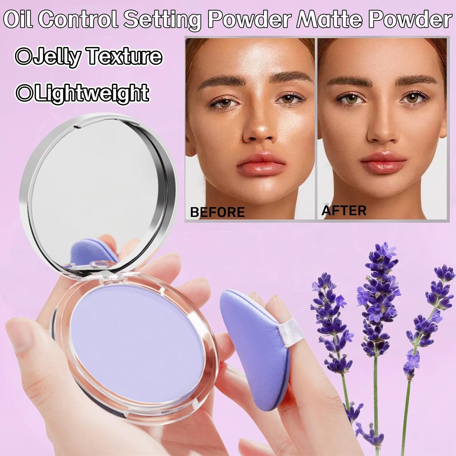 مسحوق لافندر غير لامع: مسحوق أرجواني لافندر ينتج عن التقشير الدقيق في ثانية واحدة تأثيرًا غير لامع. يغطي العيوب على الفور للحصول على مظهر جميل وطبيعي ومشرق. يخلق مسحوق التحكم في اللمعان طبقة واقية وامتصاص فوق الرباط لامتصاص الزيت الزائد لحماية طوال اليوم للحصول على ملمس ناعم ولمسة نهائية ناعمة.