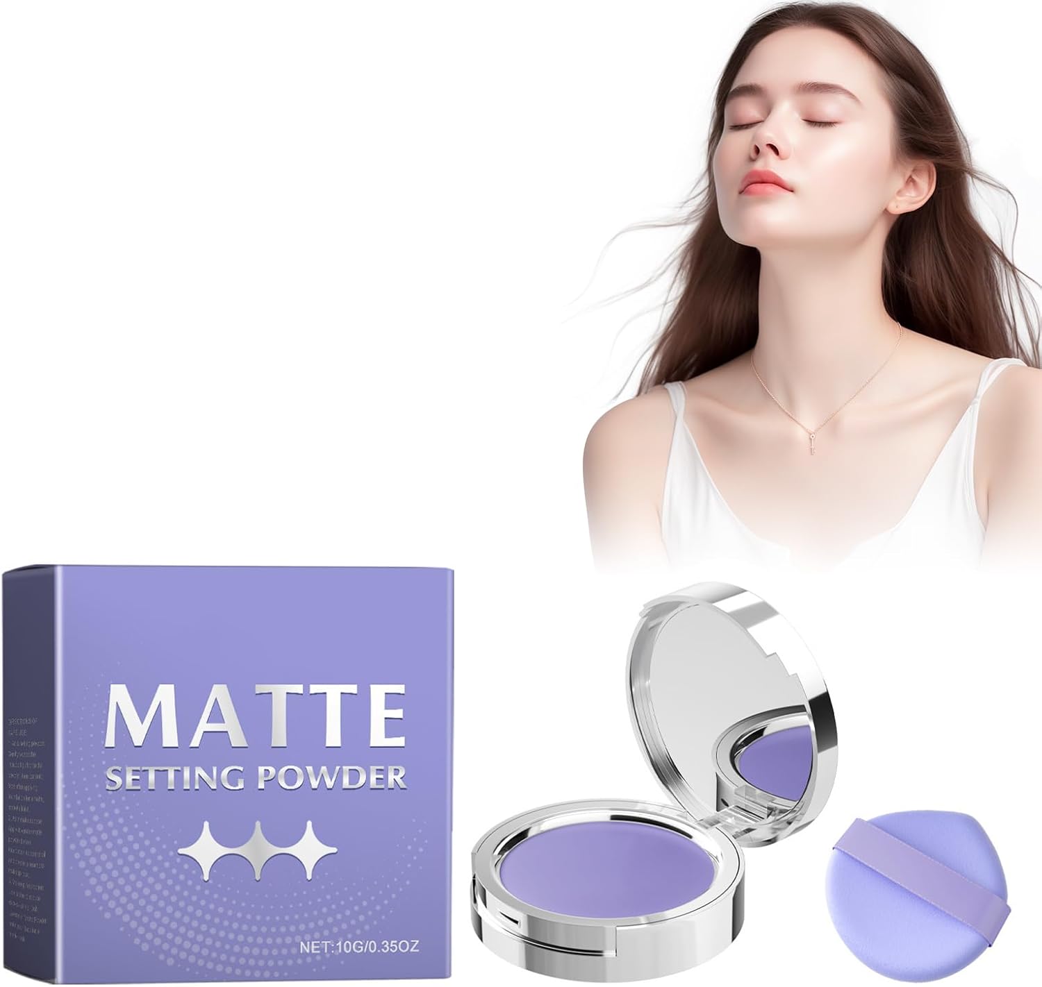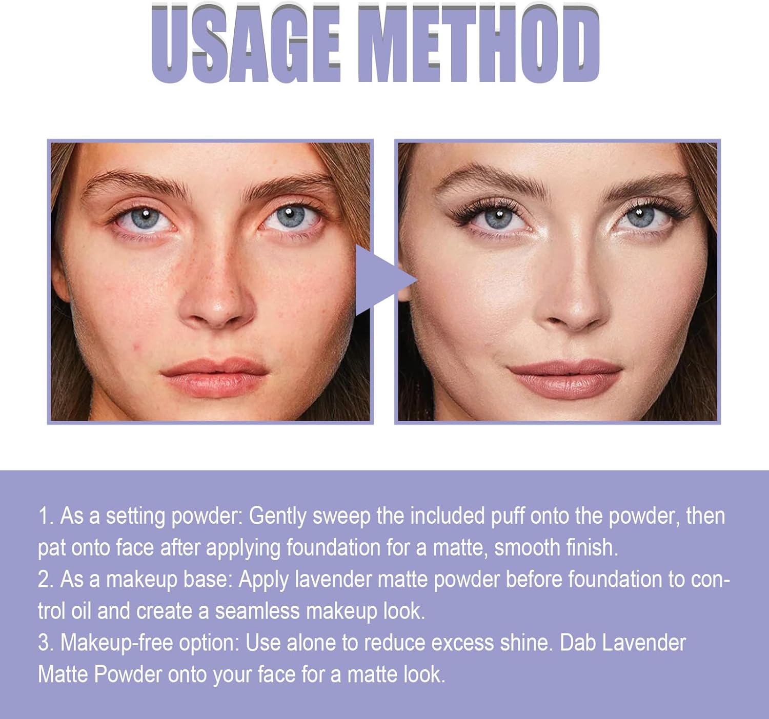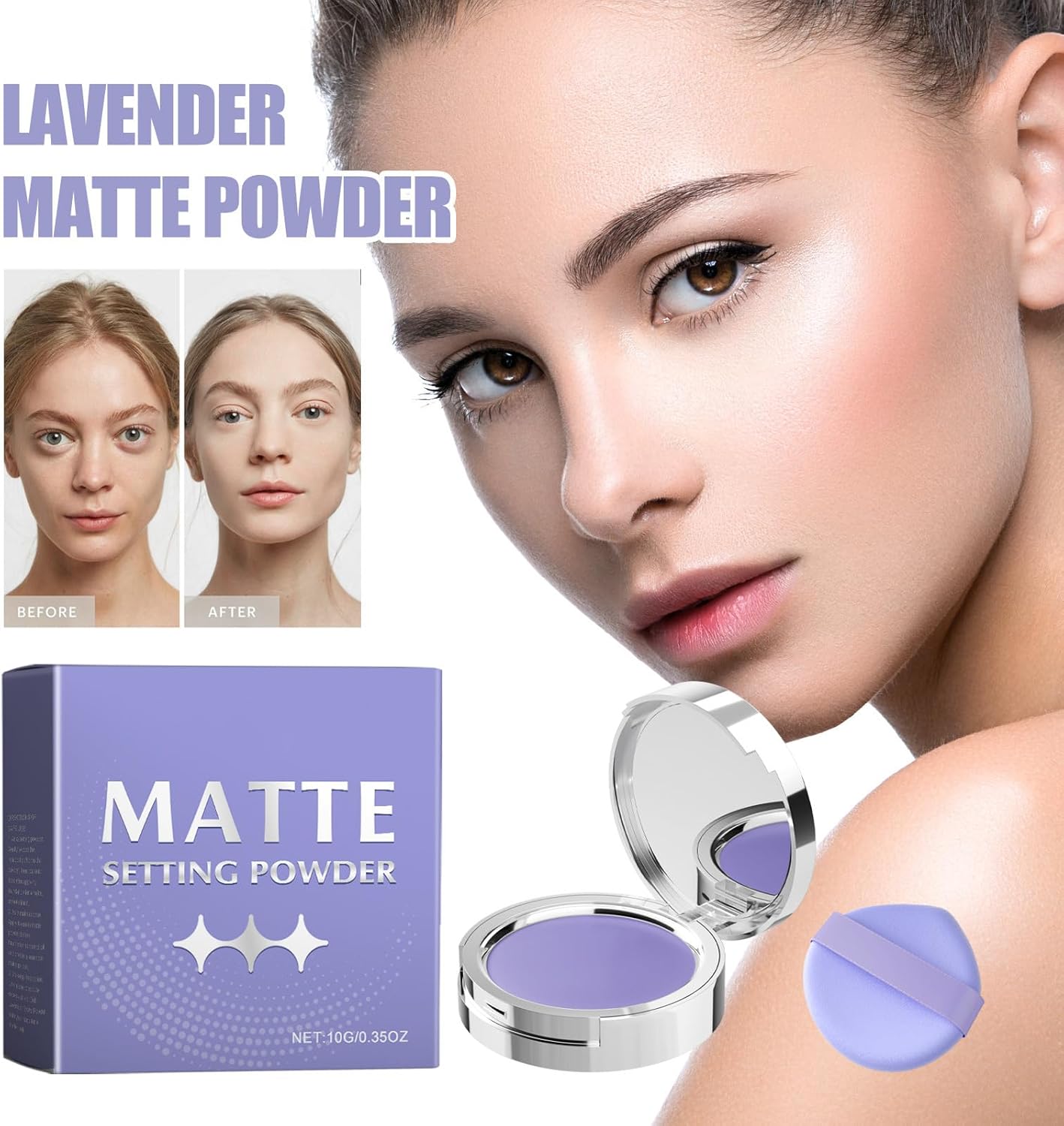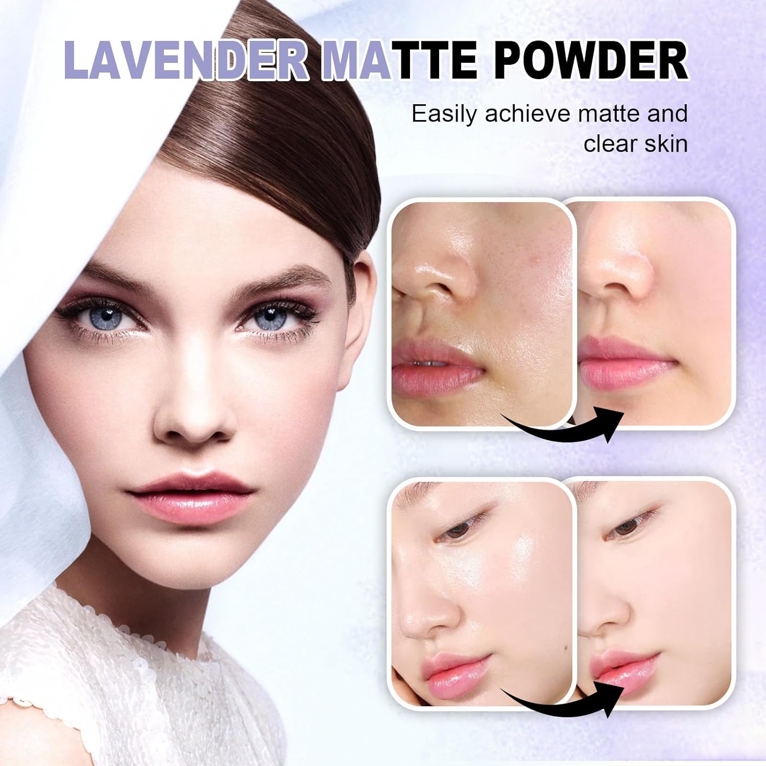 بودرة لافندر غير لامعة، بودرة غير لامعة للتحكم في الزيت، مسحوق ماص للزيت، بودرة تثبيت مكياج تدوم طويلاً، بودرة مضغوطة للتحكم في الدهون، تقليل اللمعان وضبابية المسام، لجميع أنواع البشرة