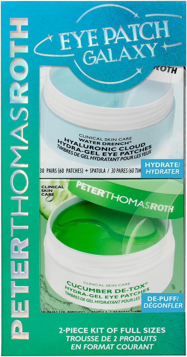 تشتمل مجموعة بيتر ثوماس روث Eye Patch Galaxy على مقاسين كاملين من وسادات العين Hydra-Gel – Cucumber De-Tox و Hyaluronic Cloud. تعمل أقنعة العين عالية الجودة هذه على ترطيب البشرة الحساسة حول العينين بشكل مكثف، وتقلل من ظهور الهالات السوداء وتجعل العيون المتعبة تبدو منتعشة.