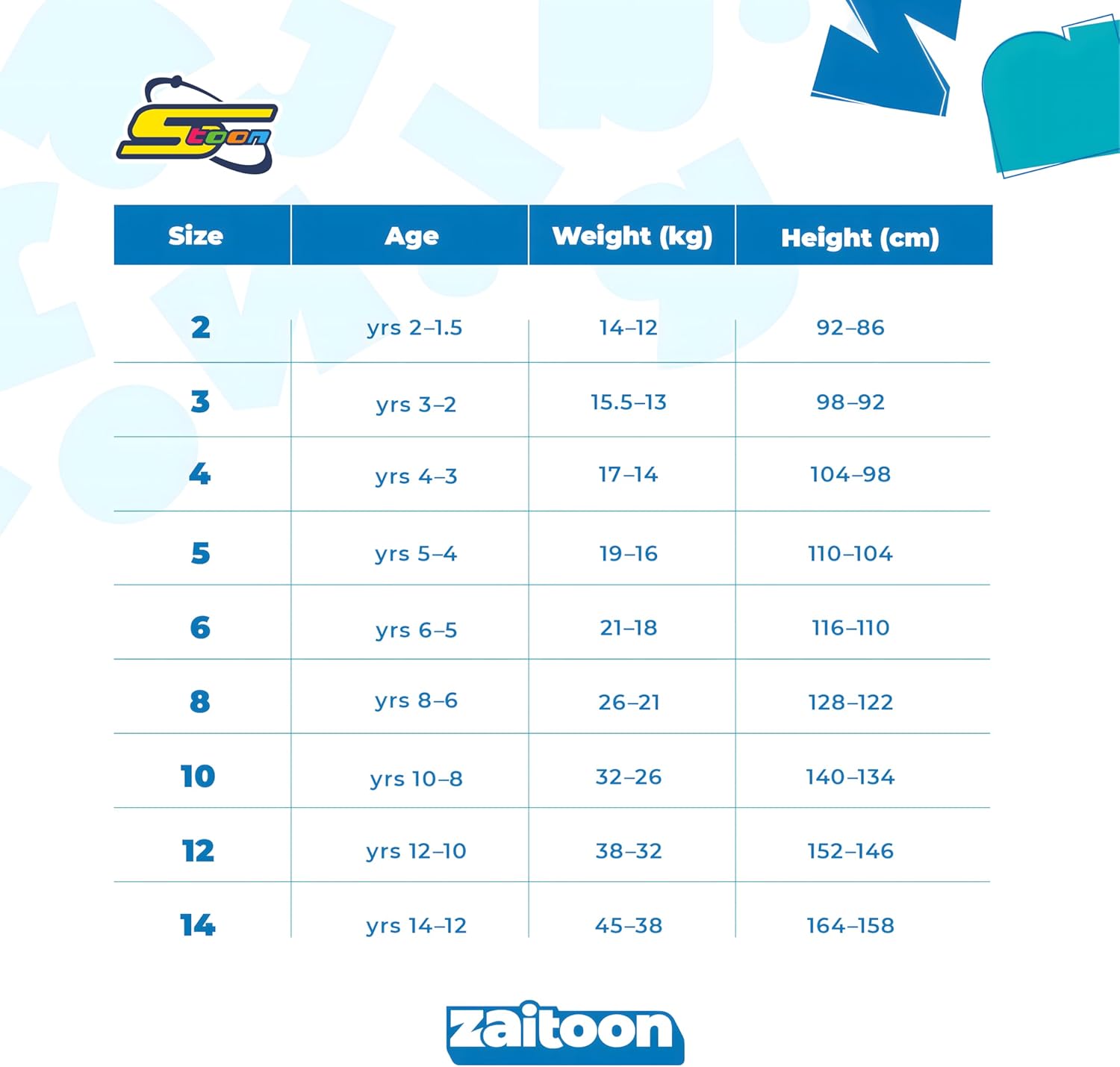 - المقاسات : متوفرة بمقاسات مختلفة تناسب مختلف الأعمار.