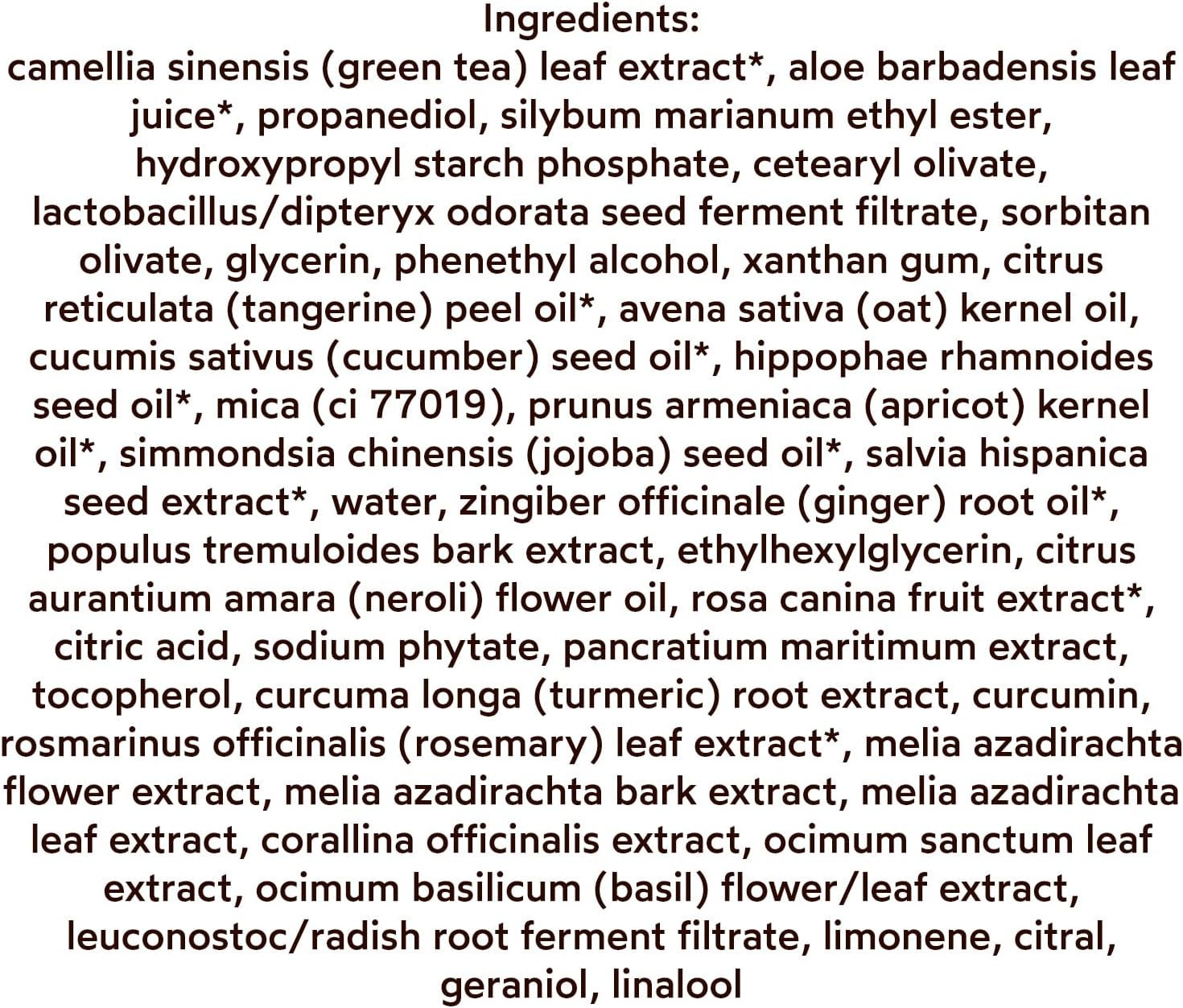 كيف يعمل: يوفر مرطب الجل خفيف الوزن هذا ترطيبًا على مدار 24 ساعة ومضادات الأكسدة المصححة للعمر للحصول على توهج مضيء. يتميز بالزنجبيل المهدئ والكركم والمواد الهلامية النباتية، يمتص بسرعة ويترك البشرة متوهجة بدون دهن. تشمل العطور الطبيعية اليوسفي والزنجبيل وزهر البرتقال. المكونات النشطة الرئيسية مثل الكركم المغذي وتهدئة جذور الزنجبيل وشوك الحليب يحبس الرطوبة دون انسداد المسام، كما أن تخمير حبوب التونكا يرطب البشرة ويشدها.