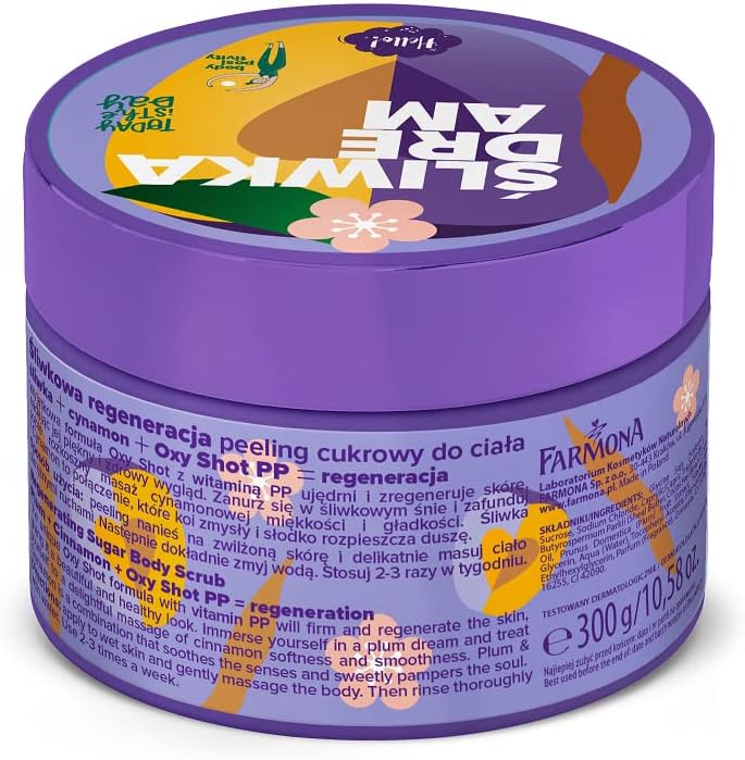 ينعم البشرة بينما تزيل زيوت الفاكهة الطبيعية والفيتامينات A وE وF السيلوليت وتحسن لون البشرة، وتم اختبارها من قبل أطباء الجلد. ضعي كمية صغيرة من المقشر على البشرة الرطبة ودلكي بلطف. ثم اشطفيه جيدًا بالماء. يستخدم من مرة إلى مرتين في الأسبوع.
