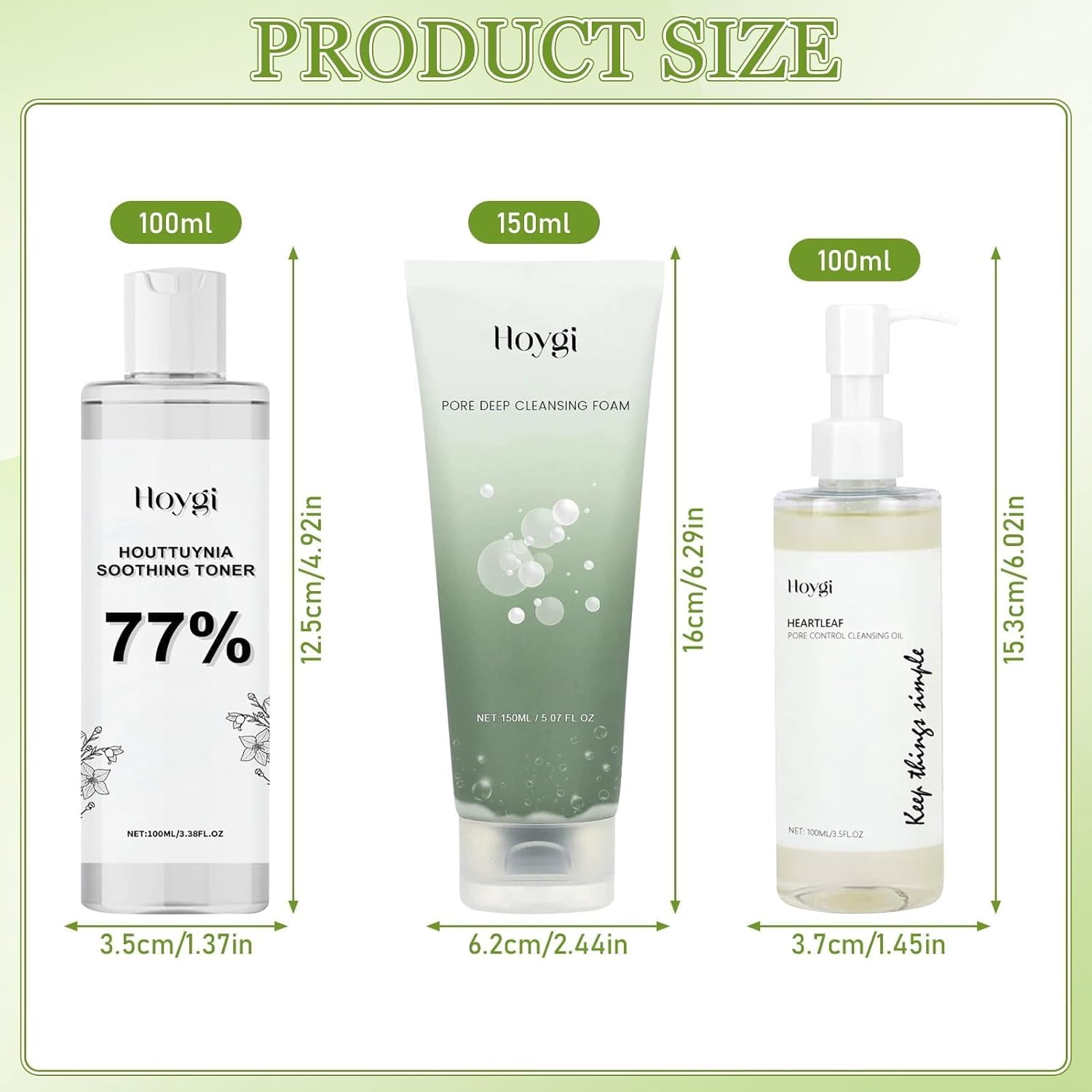 مجموعة التنظيف العميق: تحتوي مجموعة أوراق القلب المهدئة هذه على 100 مل من تونر الوجه المهدئ وزيت تنظيف 100 مل ورغوة تنظيف 150 مل. يتميز بملمس رقيق وخفيف ويحتوي على خلاصة أوراق القلب. لطيف وغير مهيج، ينظف المسام جيدًا ومناسب لجميع أنواع البشرة، خاصة البشرة المختلطة والبشرة الدهنية.