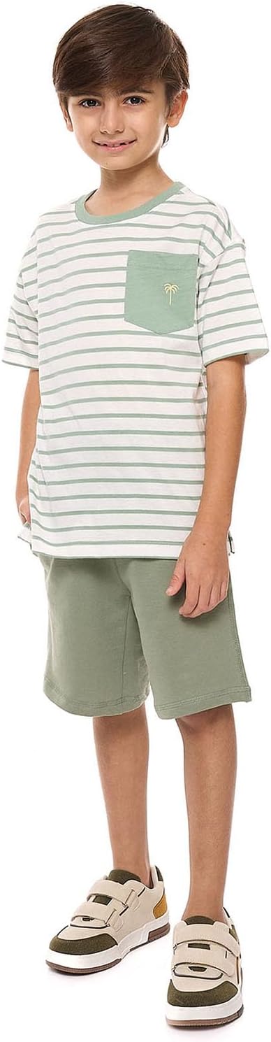 تيشرت مخطط برقبة دائرية ضيقة واكمام قصيرة للاولاد 325-1098KB023-1