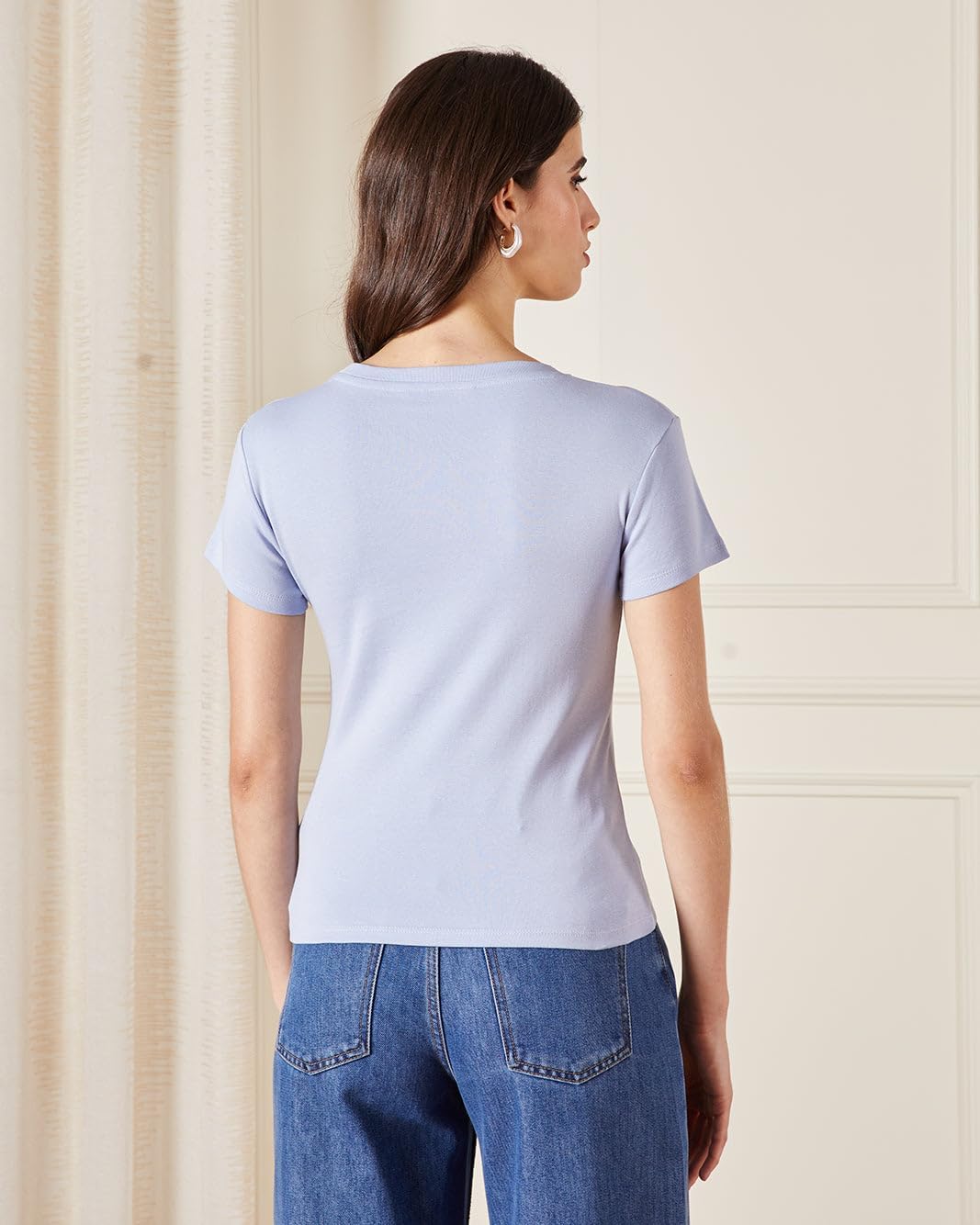 تيشرت مطبوع بلون ازرق للنساء من ريد تاغ