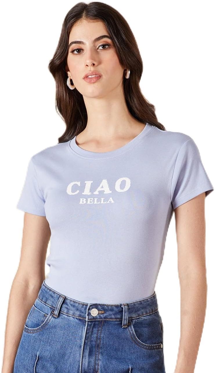 شراء تيشرت مطبوع بلون ازرق للنساء من ريد تاغ اون لاين من امازون او نون وحراج تيشرت مطبوع بلون ازرق للنساء من ريد تاغ