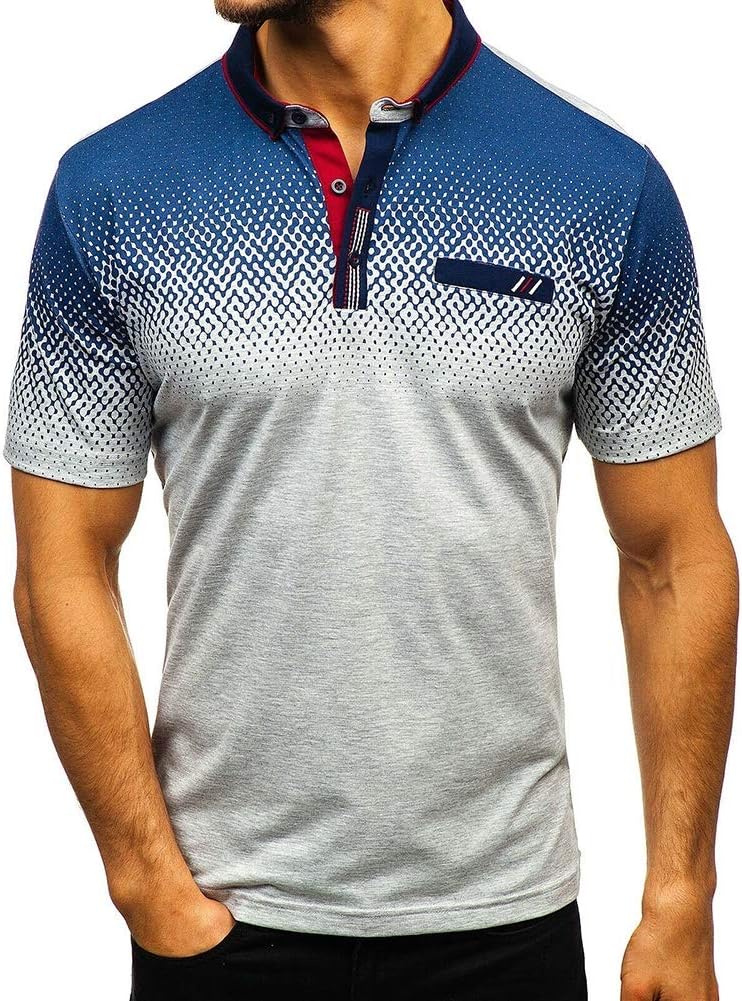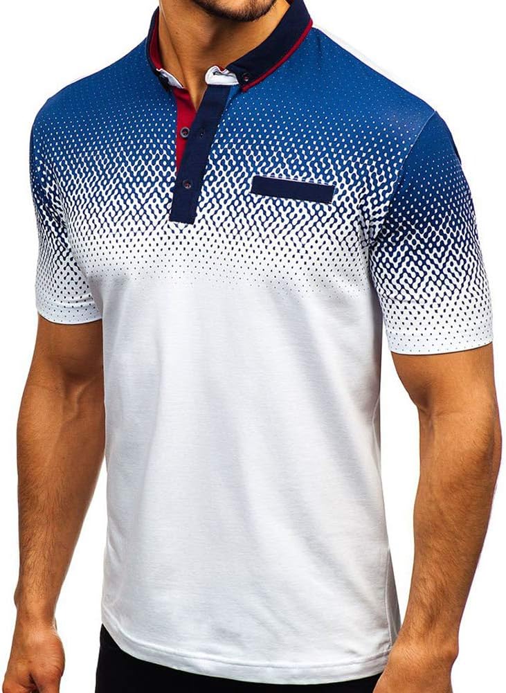 تيشيرتات للرجال، تي شيرت عصري للرجال بطباعة نقاط ثلاثية الابعاد متدرجة باكمام قصيرة وياقة مطوية لاسفل