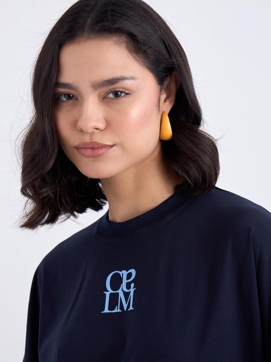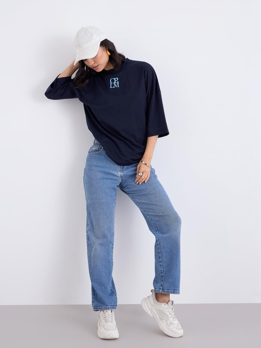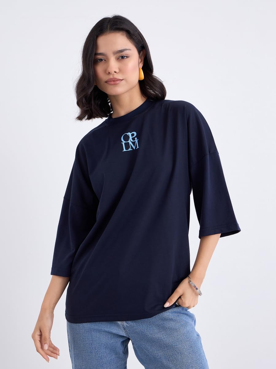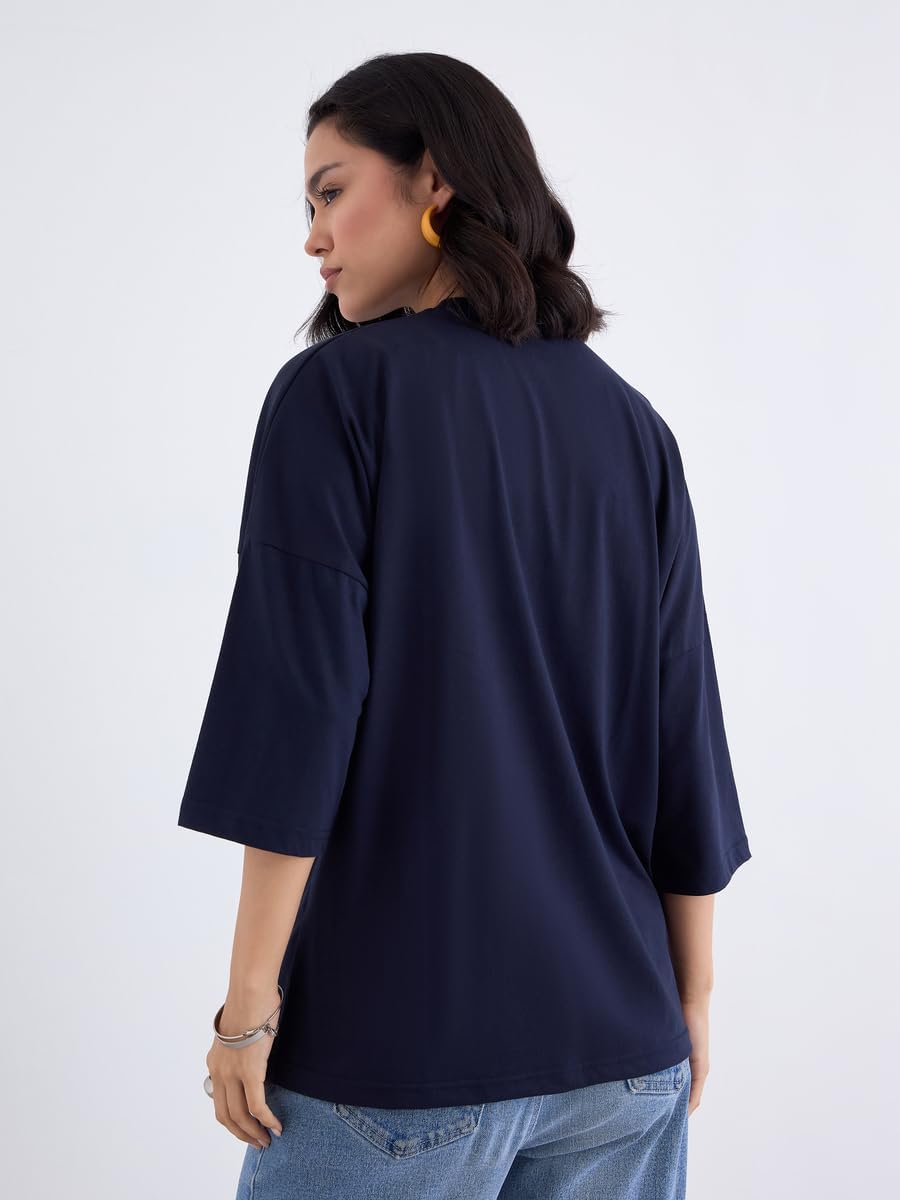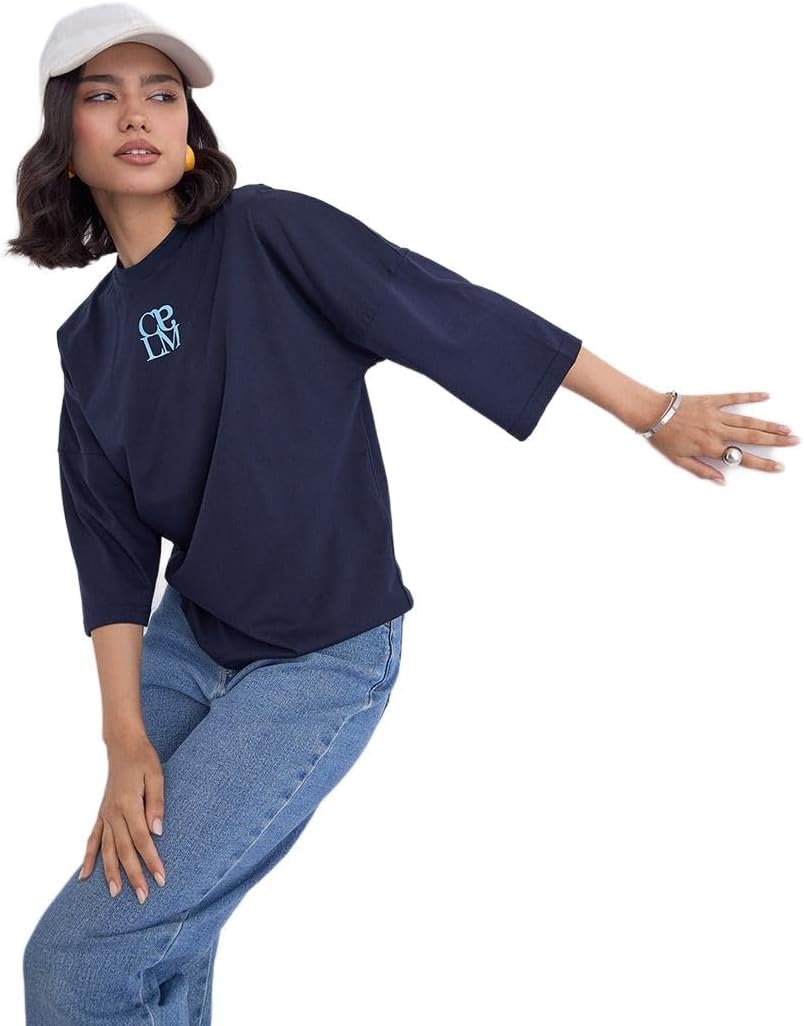 تيشيرت للنساء من ستايلي، مقاس كبير 3/4، لون ازرق كحلي