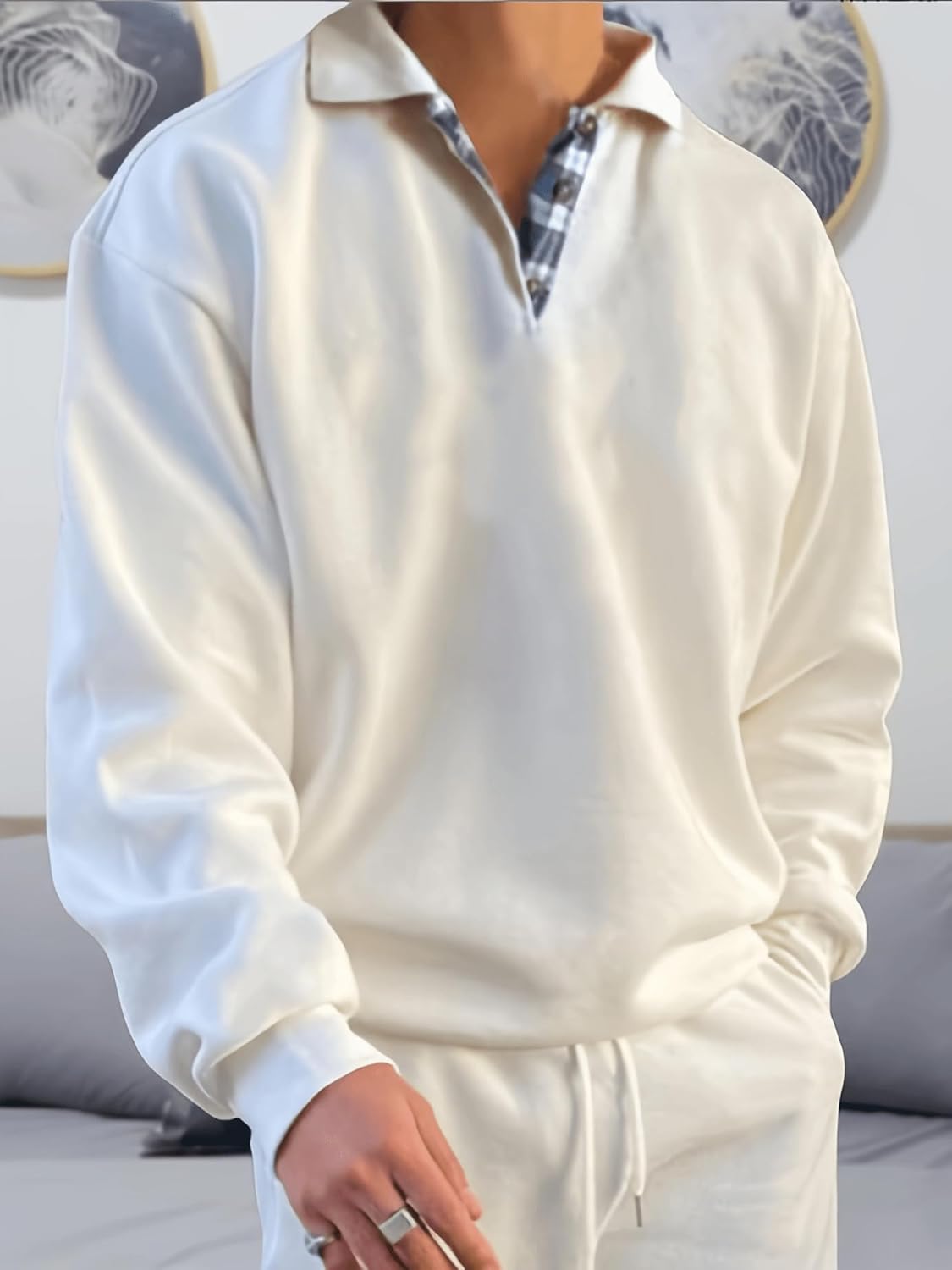 تي شيرت بولو باكمام طويلة وقصة عادية وقبة منقوشة من القطن للجولف للخريف والشتاء للرجال من ايه ام دايركت