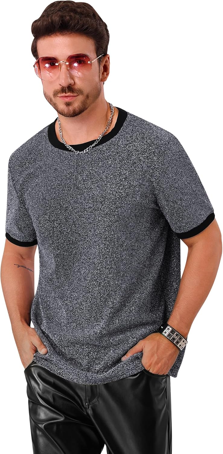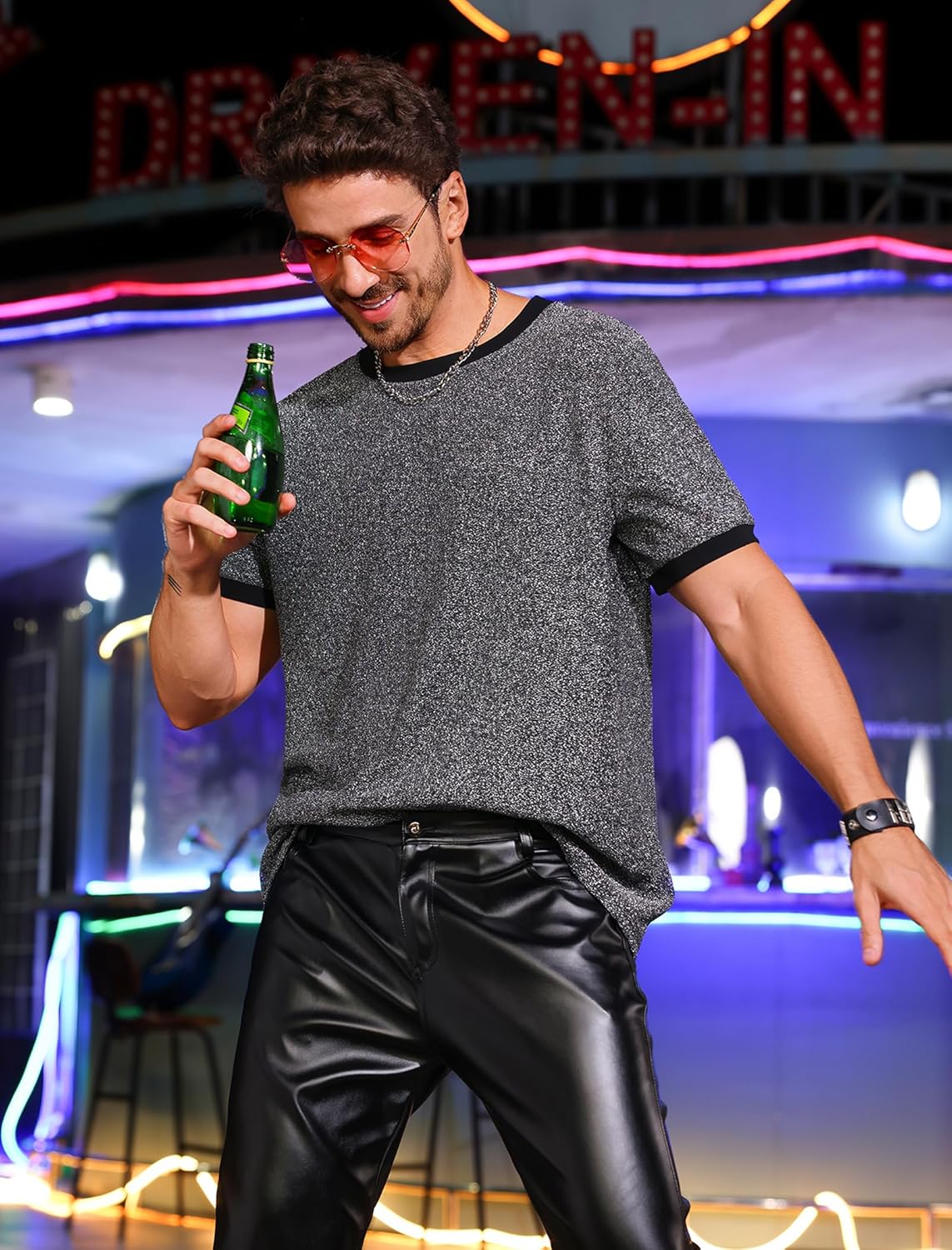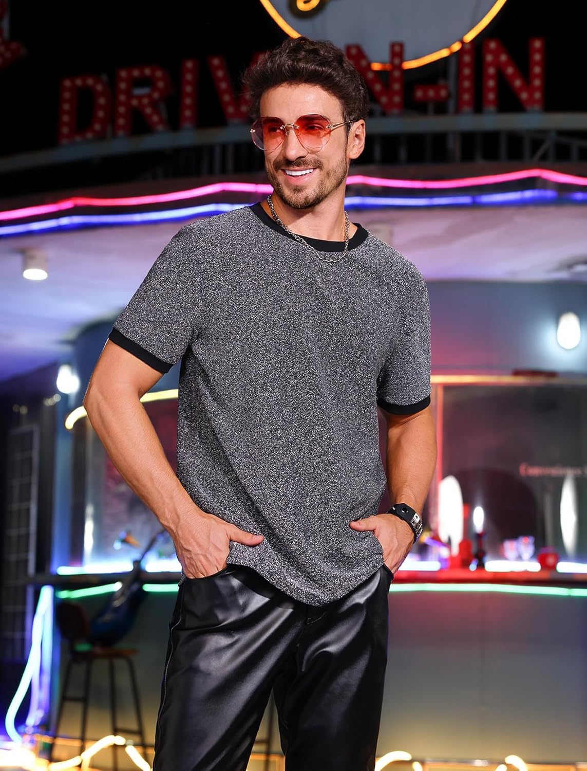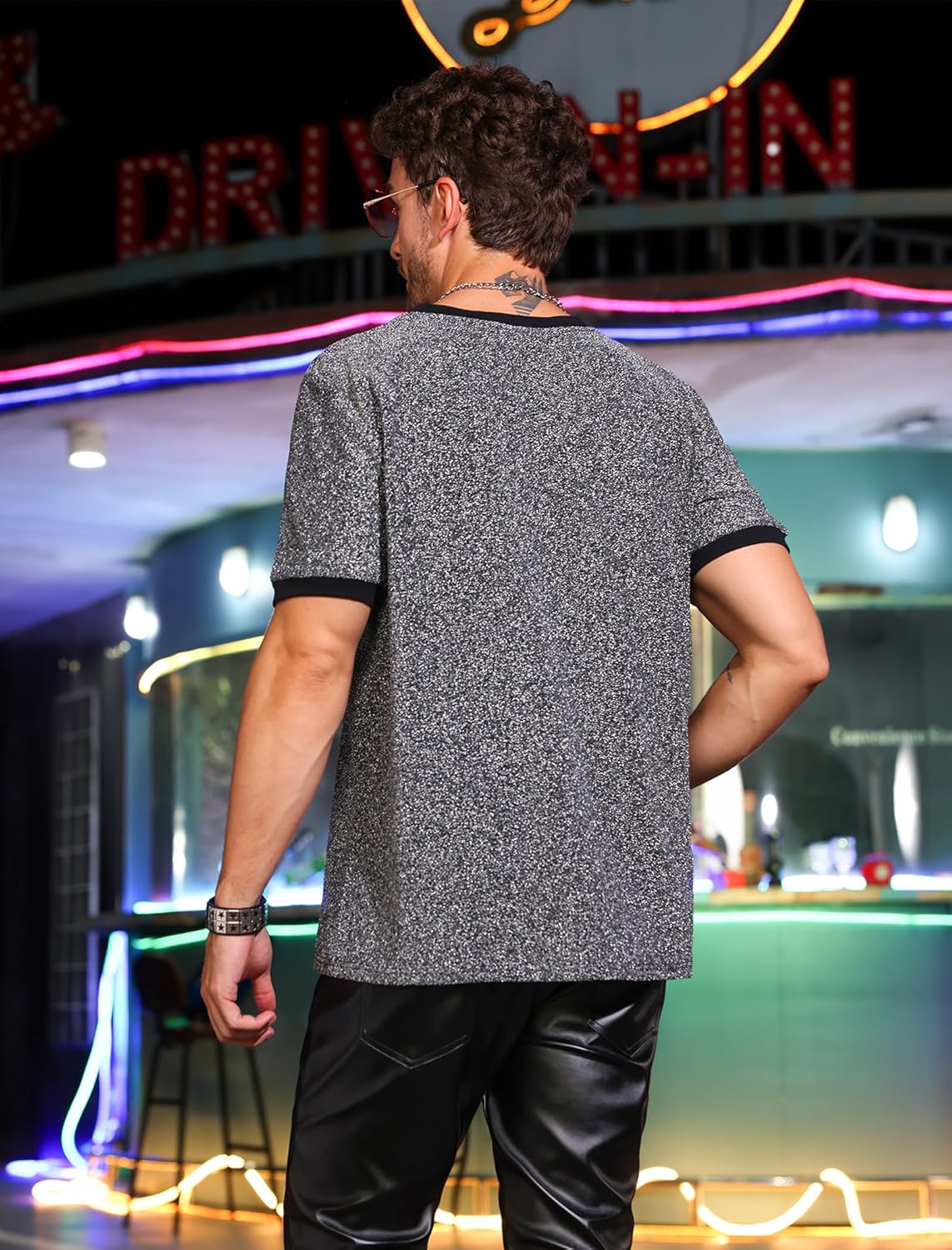 تي شيرت لامع بأكمام قصيرة للرجال لامع للحفلات والنوادي الليلية