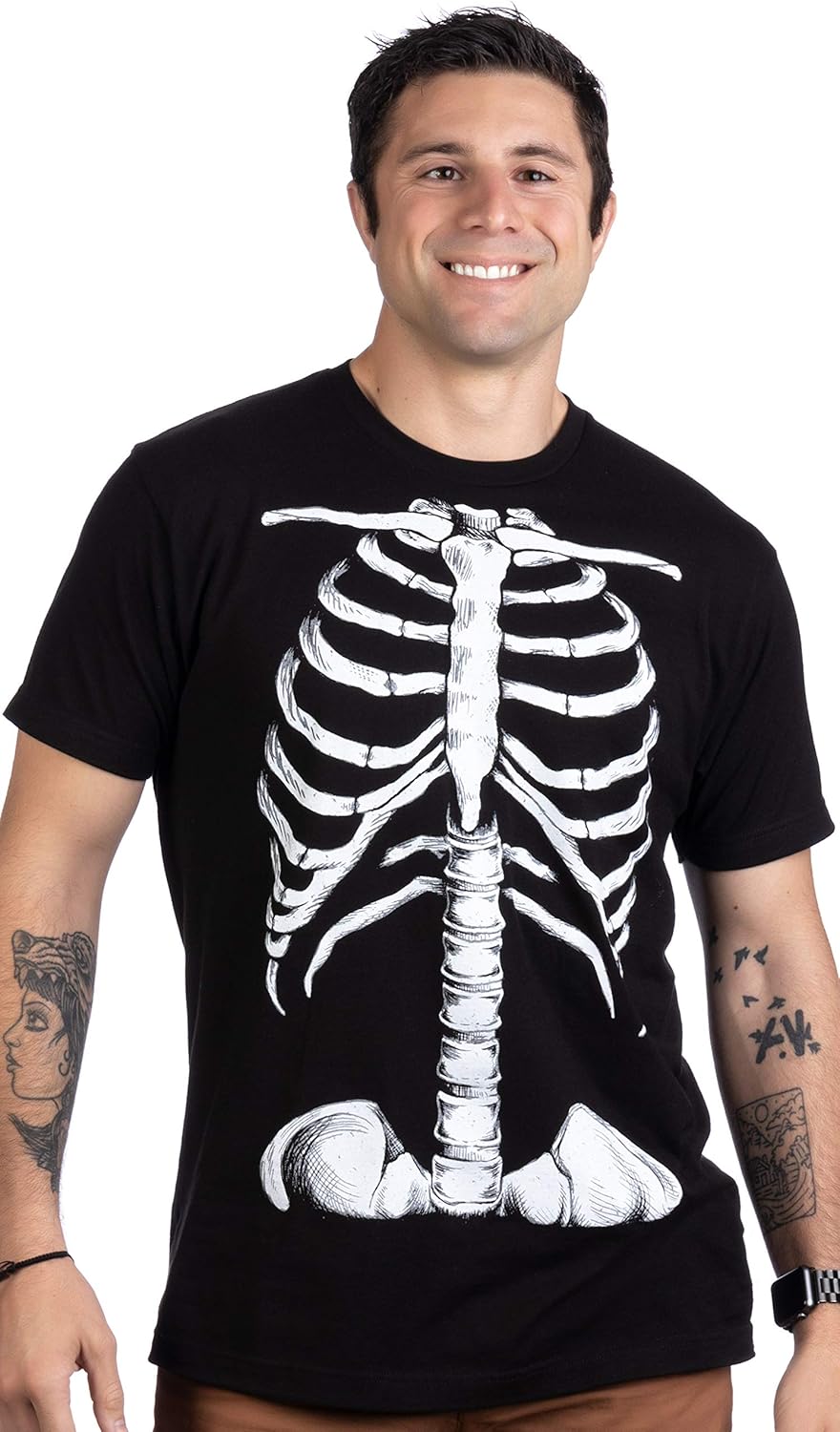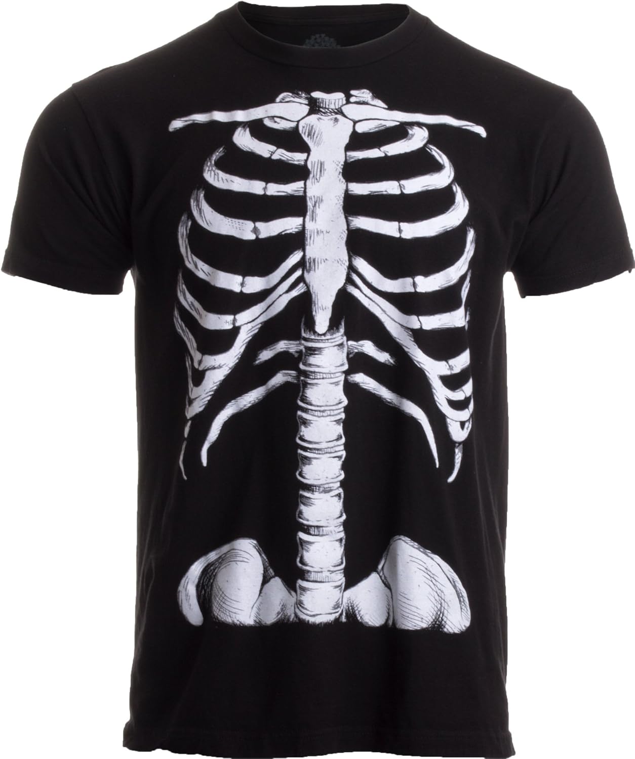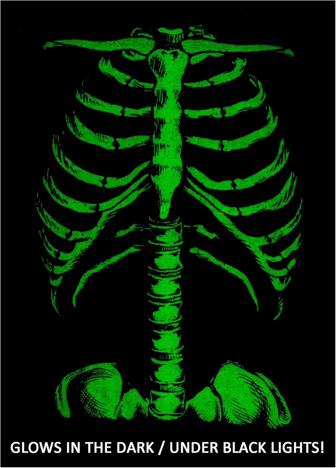 تي شيرت للجنسين مع طباعة شاشة عملاقة مطبقة باحترافية على الجزء الأمامي من جذع الهيكل العظمي.