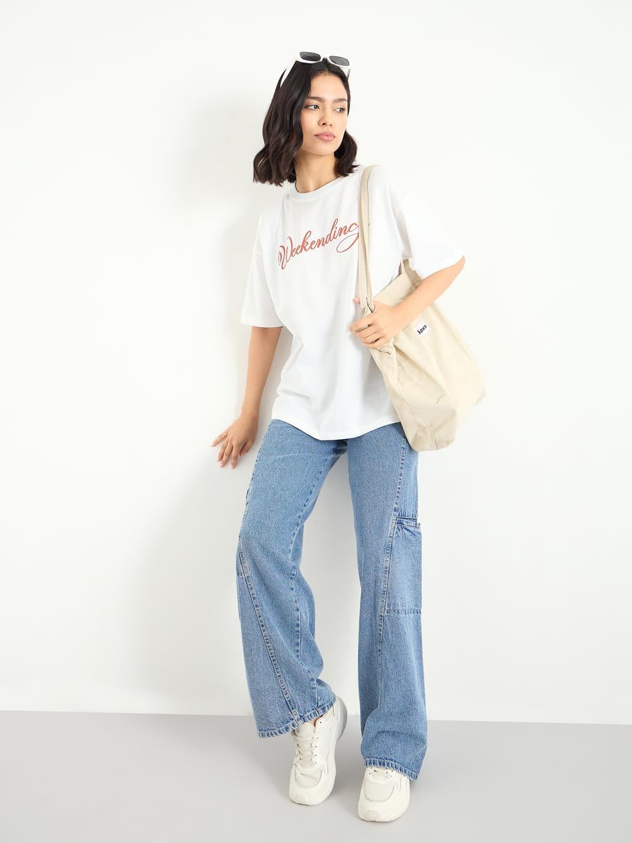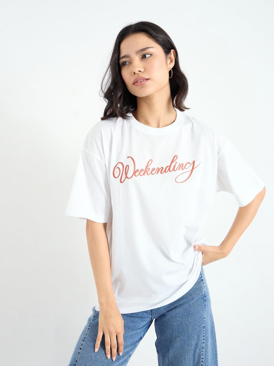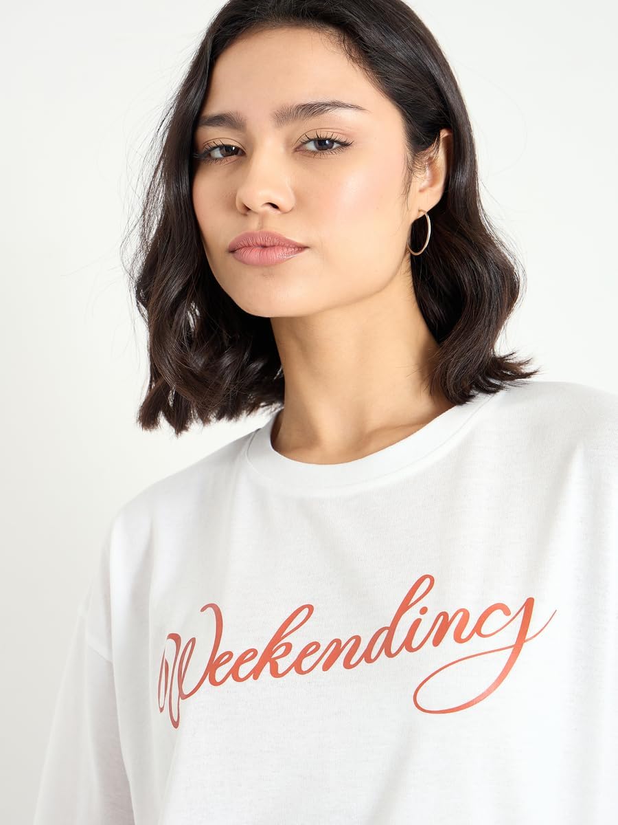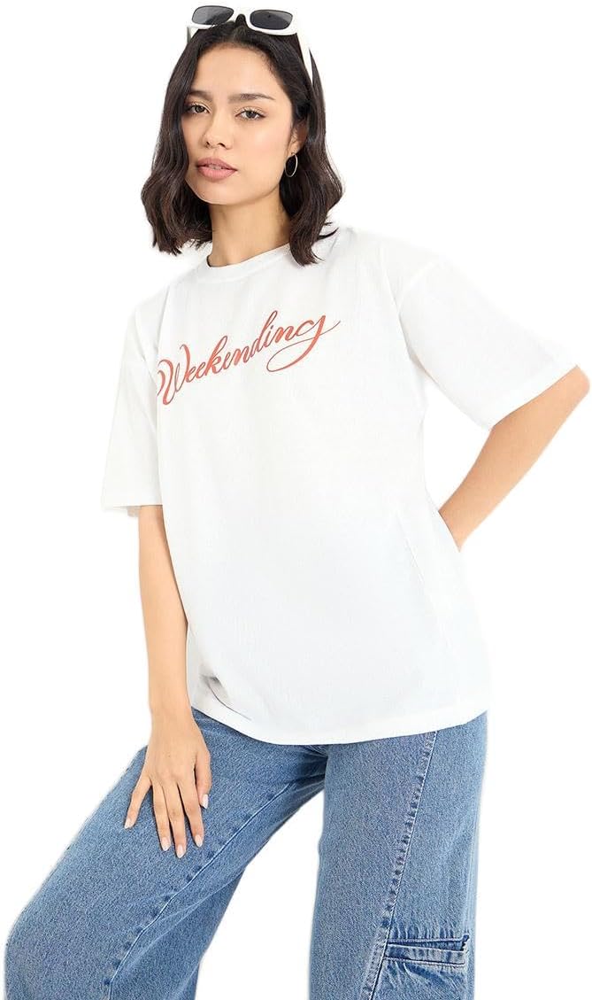 تي شيرت للنساء من ستايلي، مقاس كبير يحمل شعار عطلة نهاية الاسبوع بلون ابيض