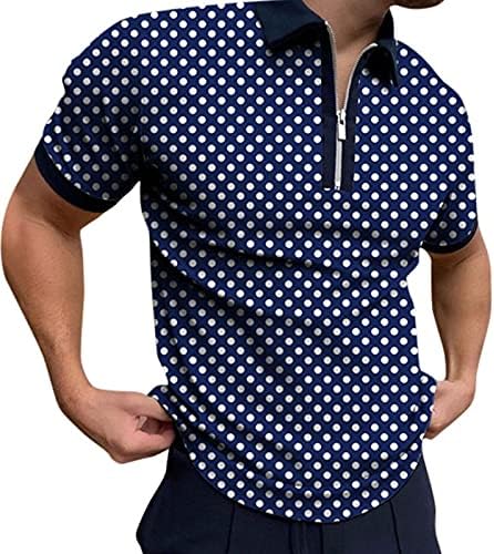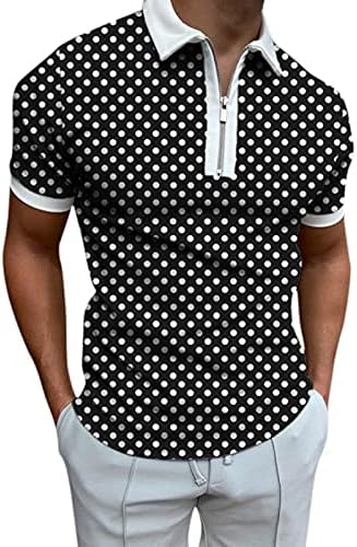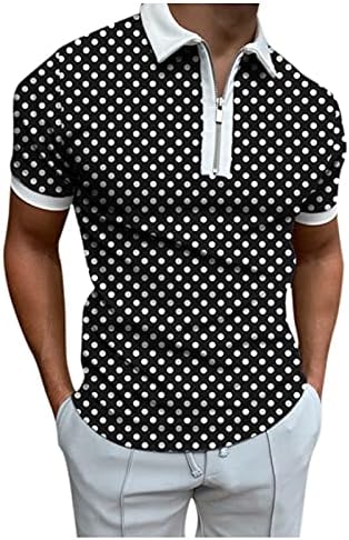 تي شيرت Ancoree رجالي كاجوال تي شيرت صيفي بسحاب ياقة مستديرة تي شيرت منقط مطبوع قميص بولو للرجال (اللون: أبيض، المقاس: L)