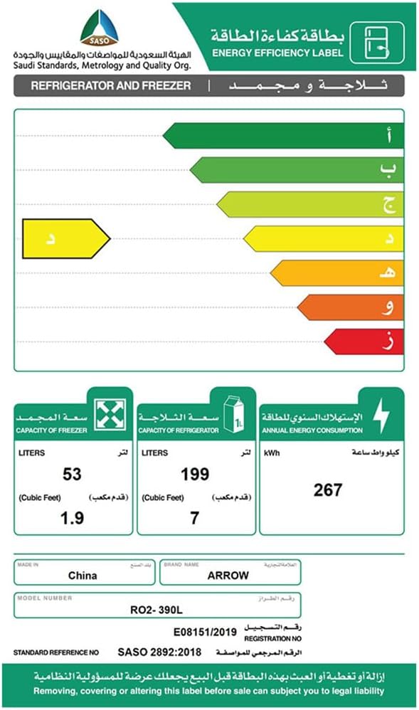 شراء ثلاجة بباب مزدوج من ارو، 8.9 قدم مكعب، 252 لتر، RO2-390 لتر، ديفروست، ابيض اون لاين من امازون او نون وحراج ثلاجة بباب مزدوج من ارو، 8.9 قدم مكعب، 252 لتر، RO2-390 لتر، ديفروست، ابيض