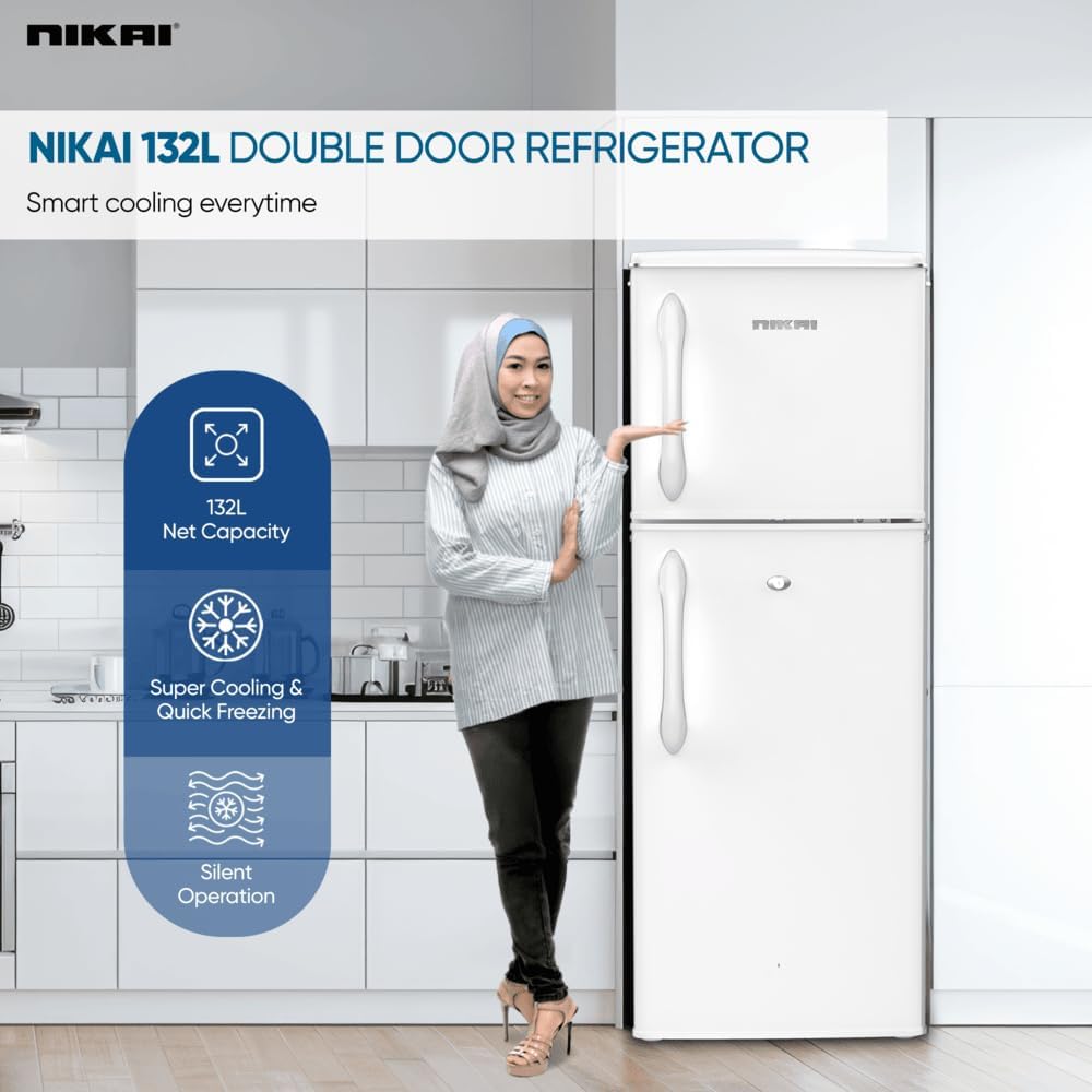 ثلاجة صغيرة الحجم 4.7 قدم مكعب (132 لتر) من نيكاي | ترموستات قابل للتعديل | مبرد R600A صديق للبيئة | ضاغط صامت وموفر للطاقة | وظيفة اذابة الثلج | NRF170N23W