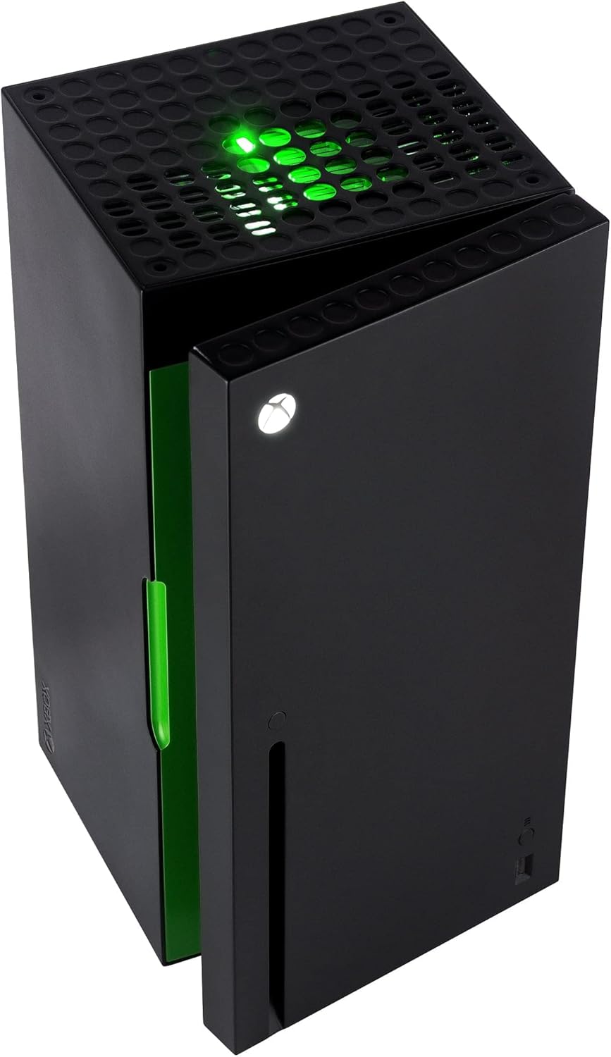 نقدم ثلاجة اكس بوكس سيريز اكس ريبليكا الصغيرة من شركة اوكونيك! تتسع الثلاجة الصغيرة باللون الأسود اللامع إلى ما يصل إلى 12 علبة من مشروبك المفضل لامتلاكها رفان. سيبقى مشروبك المفضل بجانبك بارداً وأنت تستمتع بالألعاب مع هذه الثلاجة الصغيرة. مع مصابيح LED وميزات السطح التي صنعت لتشبه سلسلة اكس بوكس X، سيندهش أصدقاؤك بالتأكيد. استخدمها للشحن أيضاً – تتضمن كيبلات الطاقة وتحتوي على منفذ USB لشحن الأجهزة. هذا المنتج عبارة عن مبرد كهربائي حراري يعمل بالمروحة وليس ثلاجة تقليدية. هذا المنتج غير مصمم للاستخدام المستمر ويجب إيقاف تشغيله كل يومين على الأقل للمساعدة في منع التكثيف وتراكم الجليد. يبرد المنتج 20 درجة تحت درجة حرارة الغرفة المحيطة. تشغيل ثلاجة اكس بوكس ميني في الغرف الرطبة أو الباردة يزيد من احتمالية التكثيف وتراكم الجليد. باتباع هذه التعليمات ستضمن أن الثلاجة الكهروحرارية اكس بوكس ستعمل بشكل صحيح لفترة طويلة.