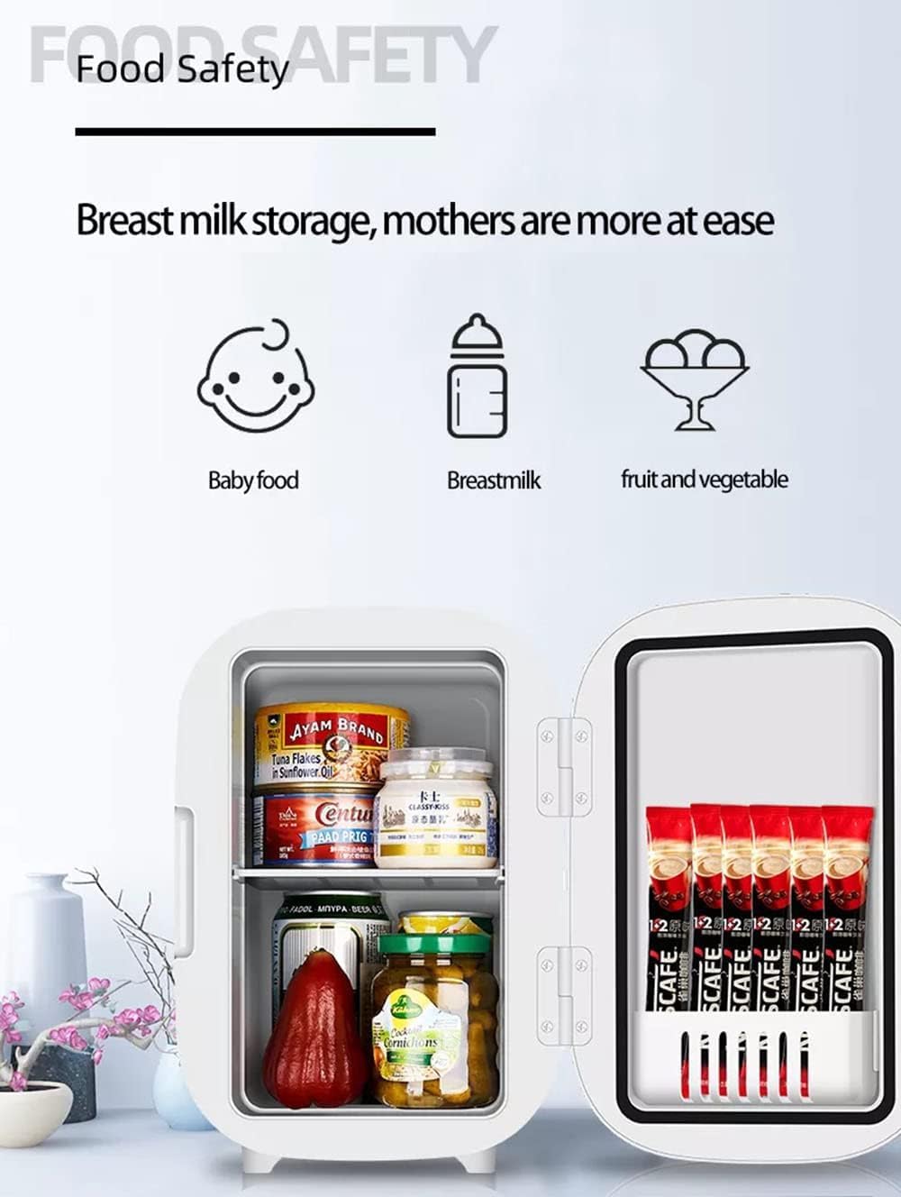 ✨【ثلاجة مكياج صغيرة سعة 6 لتر】تحتوي ثلاجة التجميل المدمجة سعة 6 لتر على وضعين للتدفئة والتبريد. يمكن أن تصل درجة الحرارة المنخفضة إلى 0 درجة مئوية. يمكن استخدامه للحفاظ على مستحضرات التجميل ومنتجات العناية بالبشرة والمشروبات الباردة والأدوية والفواكه. يمكنه أيضًا الحفاظ على درجة حرارة المشروبات الساخنة والحرارة إلى حوالي 60 درجة مئوية.