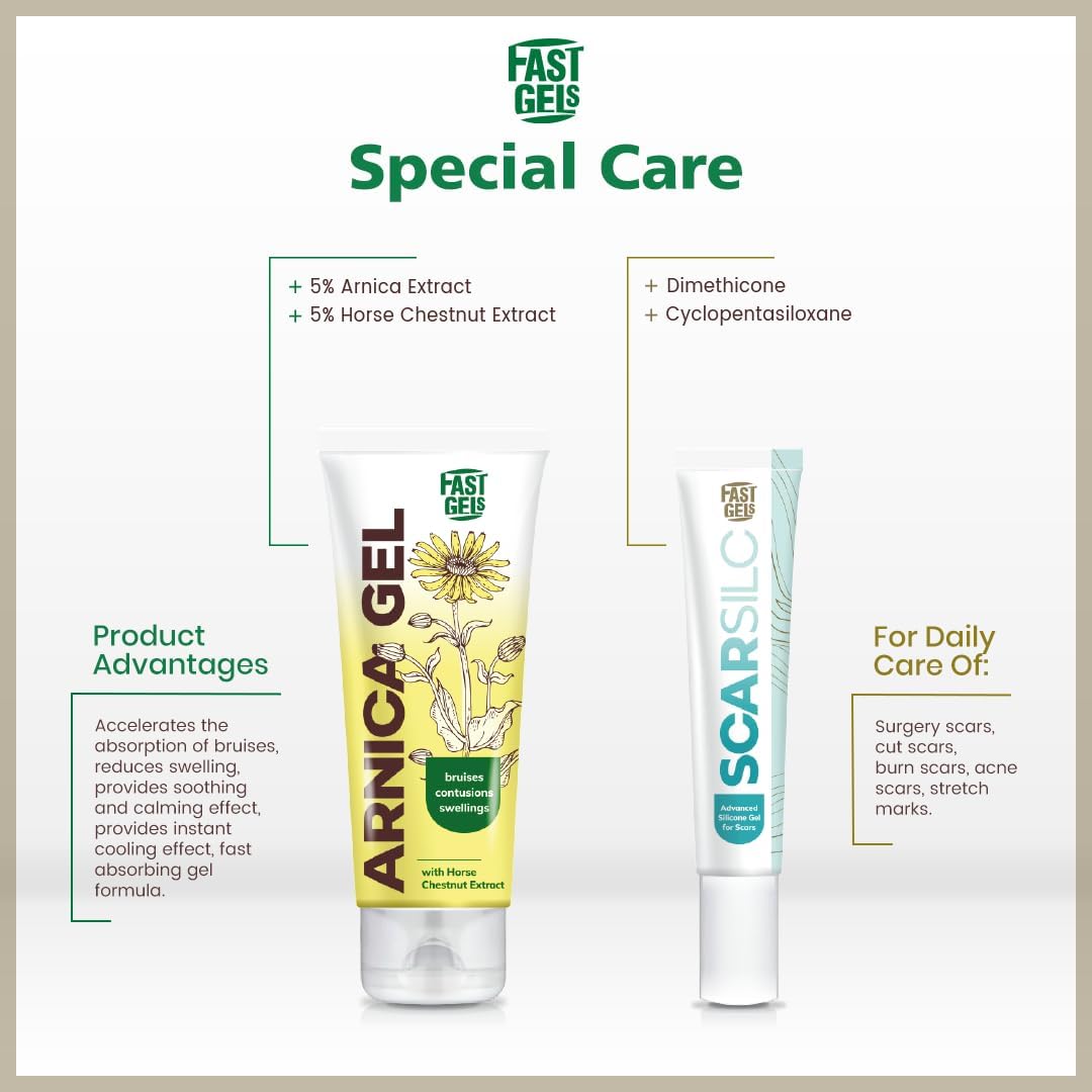 جل ارنيكا فاست مع 5% زهرة العطاس و5% مستخلص كستناء الحصان. يوصى به للعناية بالبشرة مع الانتفاخ والانتفاخ والشعيرات المتوسعةlaries. يوضع على البشرة مما يوفر تأثيرًا مهدئًا ومهدئًا. التعليمات: ضعي جل ارنيكا فاست مباشرة على البشرة، وقم بتلطيخه بلطف واتركيه حتى يتم امتصاصه. يمكن استخدامه خارجيًا 3-4 مرات في اليوم، حسب الاحتياجات. لا تستخدمه على البشرة التالفة أو المتهيجة. يُحفظ بعيدًا عن متناول الأطفال.