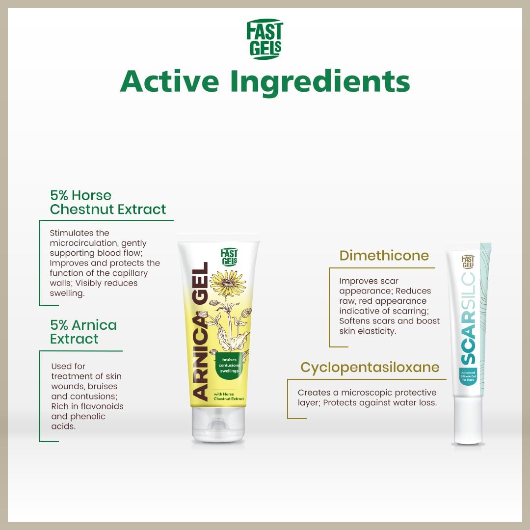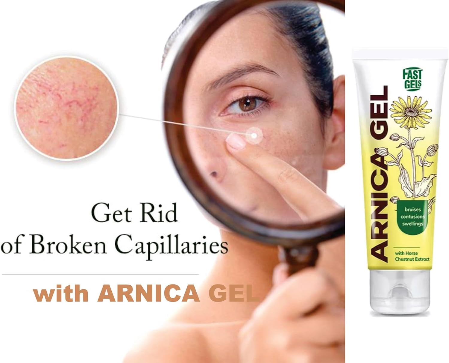 جل ارنيكا فاست مع 5% زهرة العطاس و5% مستخلص كستناء الحصان. يوصى به للعناية بالبشرة مع الانتفاخ والانتفاخ والشعيرات المتوسعةlaries. يوضع على البشرة مما يوفر تأثيرًا مهدئًا ومهدئًا.
