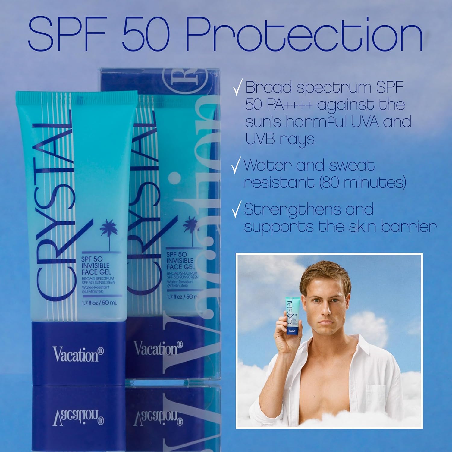 عامل حماية من الشمس بدرجة 50 عالي الأداء: يوفر جل الوجه كريستال SPF 50 حماية واسعة الطيف ضد أشعة الشمس فوق البنفسجية فئة A والأشعة فوق البنفسجية فئة B الضارة مع كونه أيضًا مقاوم للماء (80 دقيقة) ومصنوع للالتزام بقانون هاواي ريف 104.