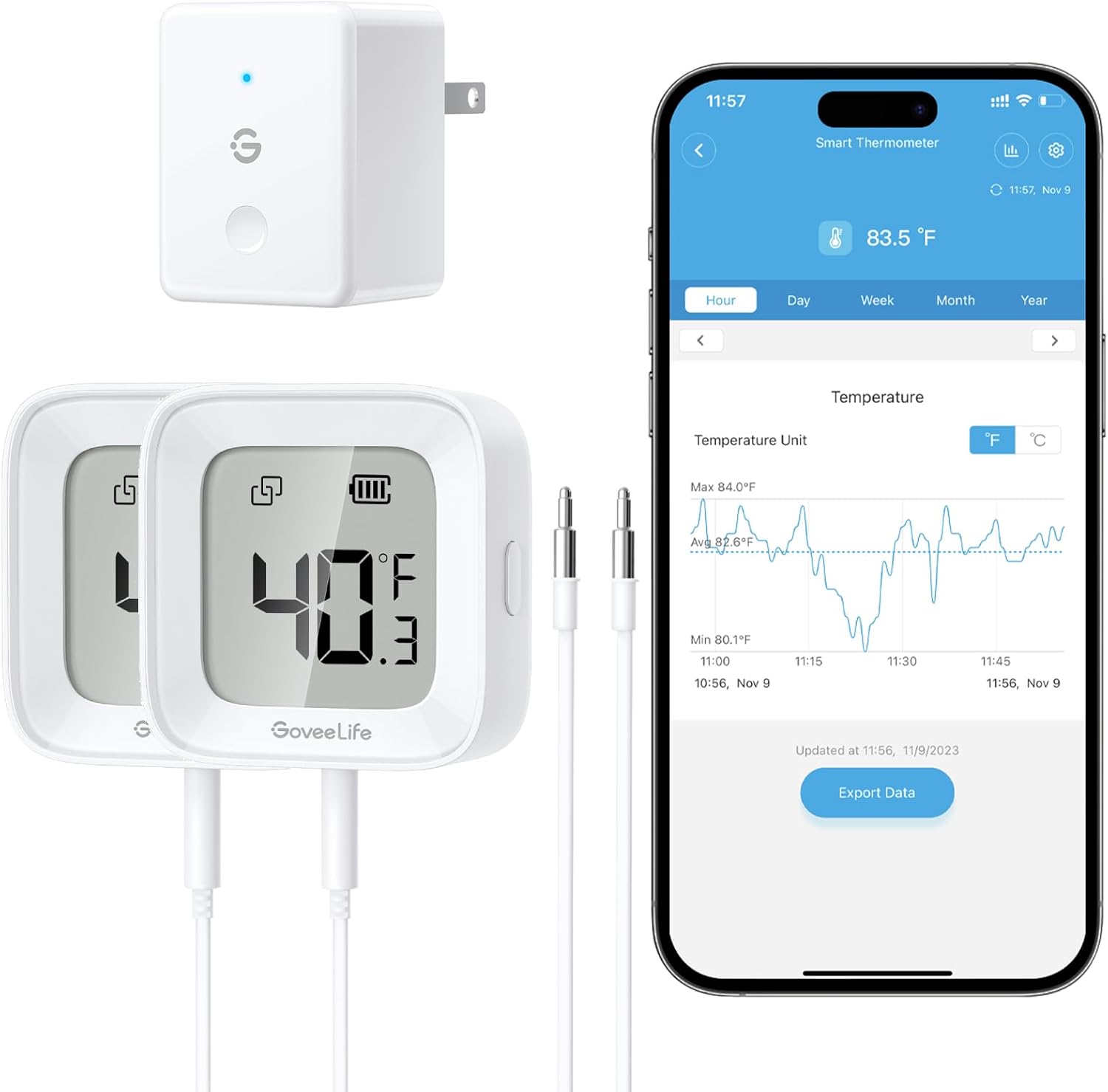 ميزان حرارة ذكي R1 من جوفي لايف يجعل الحياة أكثر ذكاءً – تنبيهات فورية على مدار الساعة طوال أيام الأسبوع: اضبط نطاقات درجة الحرارة المحددة مسبقًا، وسينبهك ميزان حرارة الفريزر عبر التطبيق عندما ترتفع درجة الحرارة أو تنخفض خارج النطاق. – مراقبة درجة الحرارة في أي مكان: تتبع بيانات درجة الحرارة في الوقت الفعلي من أي مكان باستخدام تطبيق جوفي هوم بدون رسوم اشتراك. – مسبار دقة مطور: نطاق القياس الواسع الخاص بنا من -40 درجة إلى 154 درجة فهرنهايت بدقة ±0.5 درجة فهرنهايت/0.5 درجة مئوية وتحديث سريع لمدة ثانيتين لضمان موثوقية البيانات. – منبه ذكي مضاد للخطأ: يسمح المنبه المضاد للتزييف بإعلامك بعد 1-10 دقائق من تجاوز درجة الحرارة. – سهل الوضع: يقلل الحامل الفريد من الكابلات الفوضوية ويؤمن المسبار داخل الفريزر بشكل أفضل. مع تصميم المغناطيس والحبل، يمكنك أيضًا مراقبة درجة الحرارة في أحواض الأسماك وأحواض الاستحمام الساخنة وحمامات السباحة وما إلى ذلك. – تخزين بيانات مجاني لمدة عامين: يدعم مقياس حرارة الفريزر واي فاي عرض الرسوم البيانية للبيانات عبر الإنترنت وتصدير البيانات المسجلة على مدار العامين الماضيين. العبوة: بوابة واي فاي ×1، ميزان حرارة ذكي (يتضمن بطارية ايه ايه ايه) × 2، كيبل مسبار ×2، حامل × 2، حبل قصير × 8