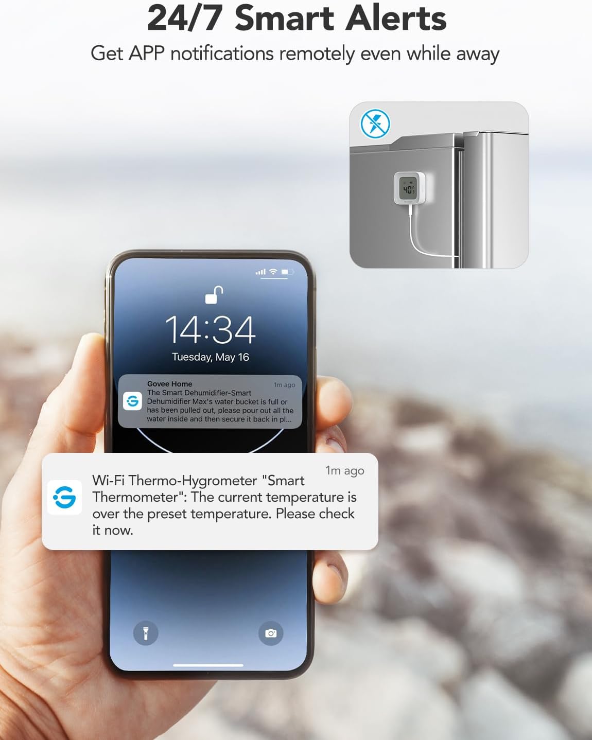 تنبيهات فورية 24/7: اضبط نطاقات درجة الحرارة المحددة مسبقًا، وسيقوم مقياس حرارة الفريزر بتنبيهك عبر التطبيق عندما ترتفع درجة الحرارة أو تنخفض خارج النطاق. يضمن اتصالاً مستقرًا للحفاظ على سلامة الطعام والمعدات. (واي فاي 2.4 جيجاهرتز فقط)