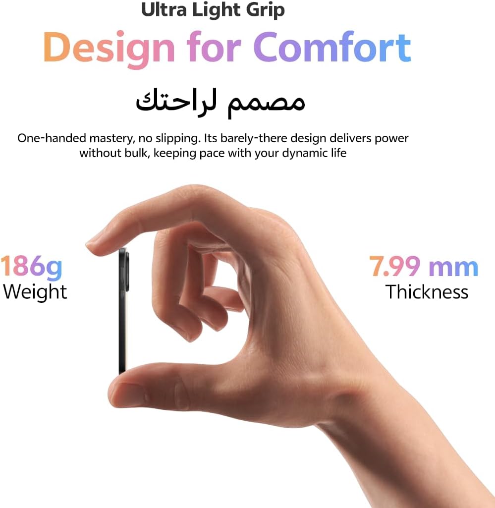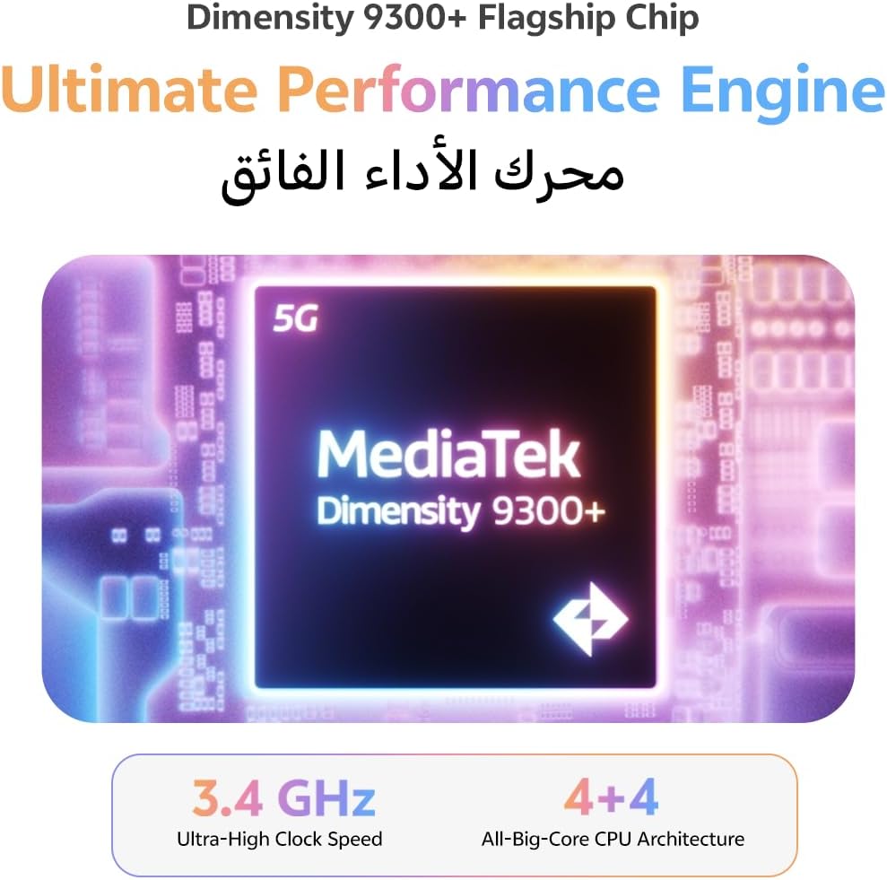 أداء لا يمكن إيقافه: جرب القوة الحقيقية لمعالج ميديا تيك ديمنستي 9300 المقترن بذاكرة رام 12 جيجابايت وذاكرة رام موسعة 12 جيجابايت. يوفر تعدد المهام واللعب والبث بسلاسة بفضل سعة تخزين ضخمة 512 جيجابايت تحافظ على جميع ملفاتك في متناول اليد.