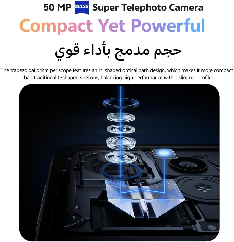 تصوير احترافي المستوى: أعد تعريف رواية القصص البصرية الخاصة بك مع كاميرا زيس المقربة بدقة 50MP، حيث يتميز بكاميرا رئيسية بدقة 50MP وكاميرا بزاوية تصوير واسعة ودقة 8MP، مصممة لالتقاط كل التفاصيل بدقة احترافية. تضمن كاميرا السيلفي بدقة 50MP أن تكون صورك نابضة بالحياة وخالية من العيوب.