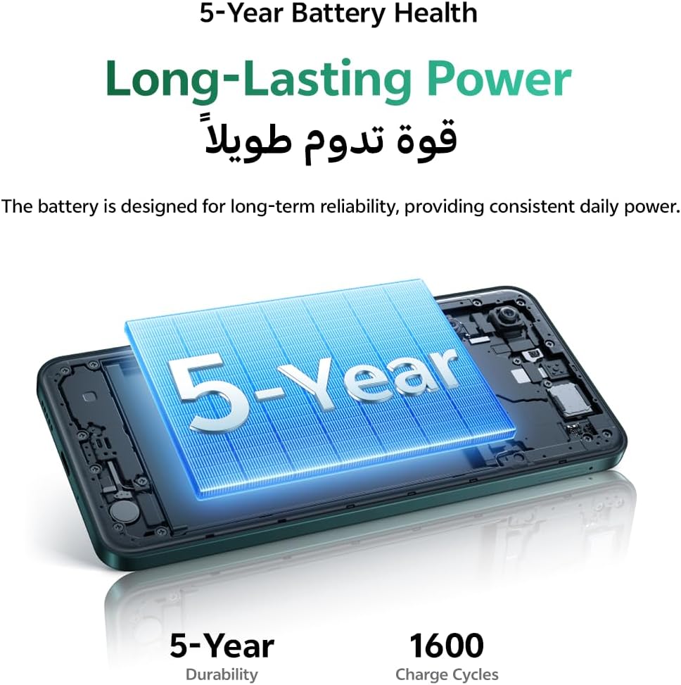 بطارية بسعة 6500 ميلي امبير في الساعة مع شاحن بقدرة 44W: أقل سمك 8.19 ملم وأخف وزن 206 جم، يتميز الجوال بسعة بطارية أكبر تبلغ 6500 ميلي امبير في الساعة. هيكلة النحيف للغاية مع بطارية أكبر يضع معيارًا جديدًا في الصناعة، مدعومًا بشاحن بقوة 44W.